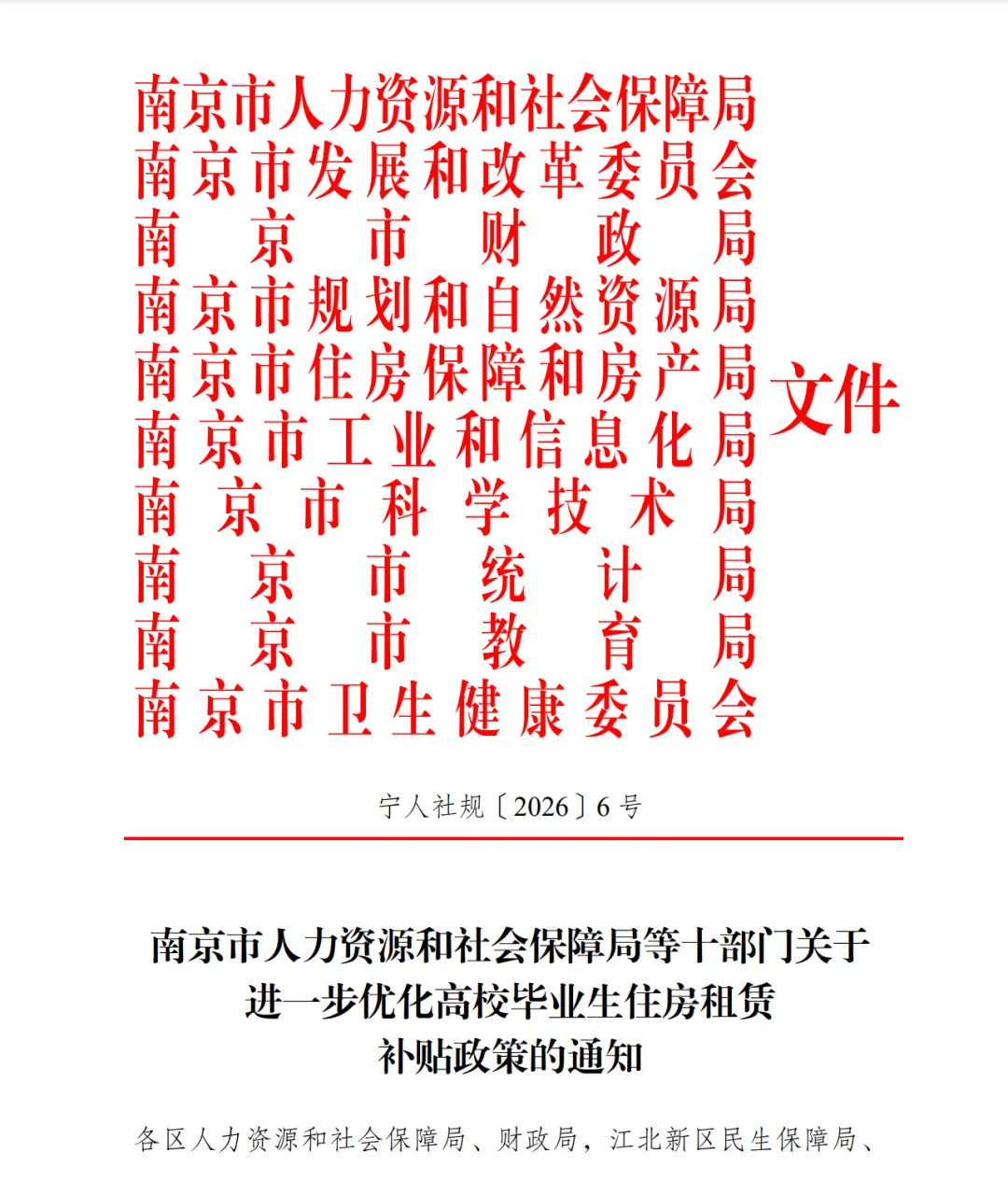 南京市人力资源和社会保障局等十部门关于进一步优化高校毕业生住房租赁补贴政策的通知