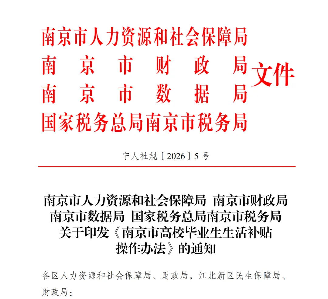 日前,南京市人力资源和社会保障局发布两项针对高校毕业生的政策通知,分别是《关于进一步优化高校毕业生住房租赁补贴政策的通知》和《南京市高校毕业生生活补贴操作办法》,最高10万生活补贴!租赁补贴扩围!