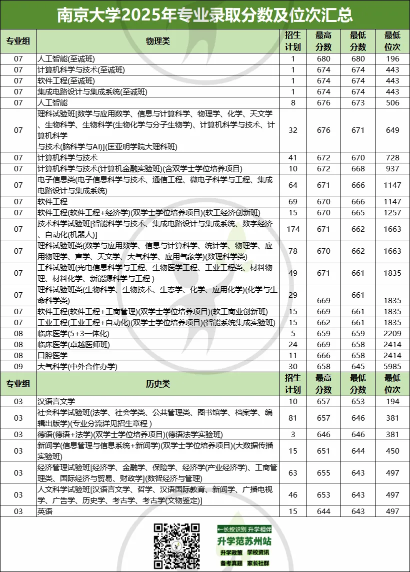 进校门槛段(大类招生):“技术科学试验班”、“理科试验班类(数理科学类/化学与生命科学类)”等大类招生专业,录取最低位次在1600名至1800名左右。这是物理类考生进入南大的“守门线”。