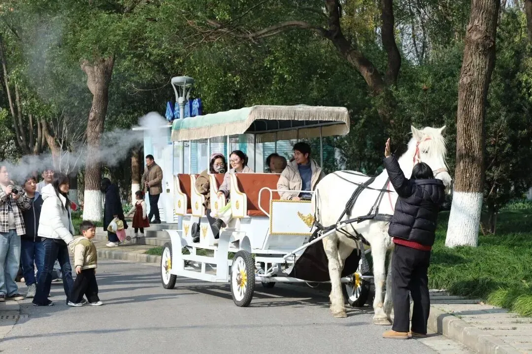 马车游园穿行花海,仿佛置身欧洲童话
