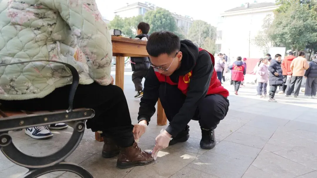 上午9时,江宁楚襄园志愿服务现场已是人头攒动。今年,服务项目在延续传统的基础上优化升级:生活服务区,普法宣传、刀具打磨、以旧换新、轮胎充气、卫生清洁与超声波清洗等“老牌”项目依旧火爆。志愿者们娴熟的技术和暖心的服务赢得居民连连称赞;新增的“擦皮鞋”服务摊位前排起长队,志愿者弯腰俯身的专注身影,成为春日里一道温暖的风景线。