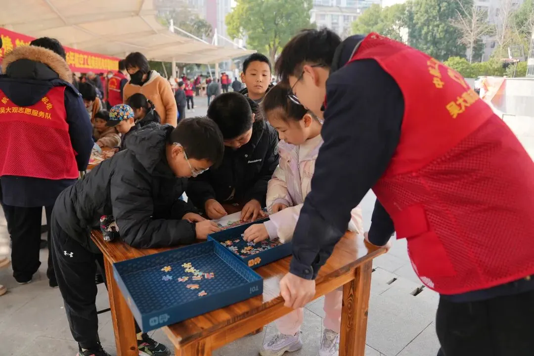 今年特别增设的儿童互动区成为全场焦点。拼图桌前,志愿者们手把手陪伴小朋友完成一幅幅作品,专注的眼神里满是耐心;套圈游戏区,孩子们排着队跃跃欲试,每一次命中都引来阵阵欢呼,每个参与的孩子都收获满满笑容。在志愿者的温柔陪伴下,孩子们玩得不亦乐乎。