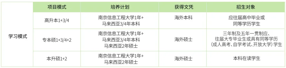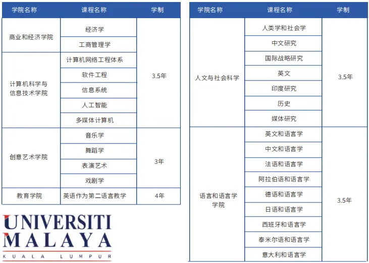 南信大预科课程(1年)+马来亚大学本科课程(3-3.5年)=世界名校马来亚大学学士学位。马来亚大学归属英联邦教育体系,可直接申请欧美高校继续深造。