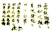 山歌越唱越开怀呀。 东山唱到西山来。 大别山里闹革命。 工农群众都起来, | 打倒豪柛和地主。 工农政权建起来。 英雄好汉当红军呀。 红旗滚滚过山来。 |
