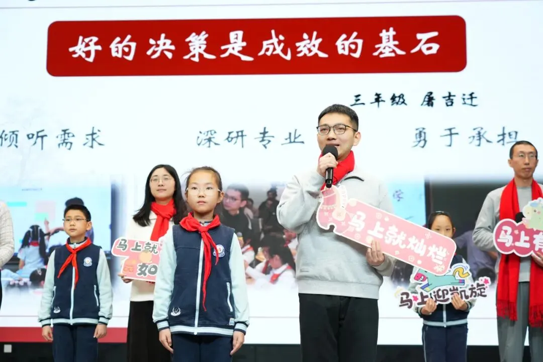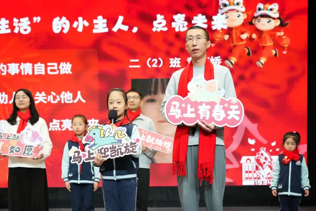 刚刚过去的寒假,我们围绕“未来的我”开展了一系列综合实践活动。同学们的热情参与和奇思妙想,让老师倍感惊喜和骄傲。我看到了你们如何从生活中发现问题:一年级的卞瑆宸同学从冬奥场馆得到启发,梦想成为优化场馆的“智能设计师”;二年级的奚沛文、颜清源等同学想用AI修复城市记忆,才语墨、欧谨诚等同学则把科技目光投向了秦淮河的生态保护。我看到了你们如何用创意和关怀去解决问题:三年级的张嘉程同学构想抗震的坚固建筑,陈欢同学构思温暖的“AI心情调色盘”去体察大人的情绪,李奕卓同学立志为行动不便的人设计辅助行走的机器外衣。从守护校园自然(四年级王千僖),到用科技活化传统文化(四年级苏子馨);从关注心理健康、构思“心晴手环”(五年级陆一凡),到请AI当“营养师”(五年级苑澜馨小组);从梦想成为宠物语言“沟通交流师”(六年级钱芃搏),到心系全球水资源(六年级王梓涵),用数字技术传承传统工艺(六年级丁梦阳),甚至构想实施远程手术的“云上医生”(六年级许莫凡)……我们全校同学完整经历了“找问题、想点子、试身手、秀成果”的探索旅程。同学们的作品,充满了奇思妙想,更展现了深厚的文化关怀和解决真实问题的潜力。这,就是在为成为“未来的我”积蓄力量。踏着这股探索与创新的春风,我们信心满怀地开启2026年的新征程。