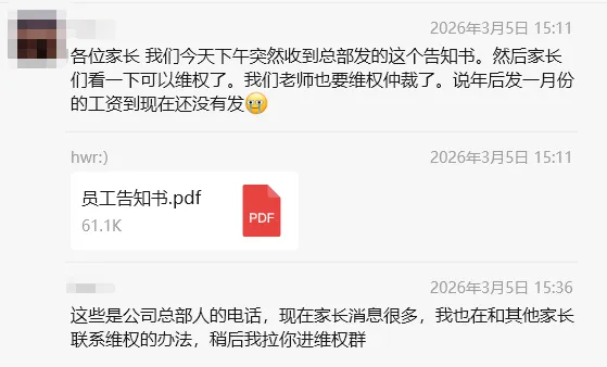 一份据称是发给内部员工的《员工告知书》在社交媒体流传。