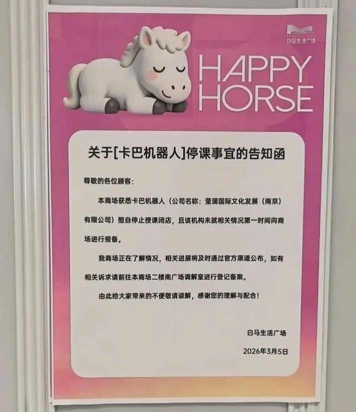 有家长反映,该店此前告知过完年放假后恢复营业,其放假通知明确标注初八(农历)上班,但如今门店仍处于关闭状态。