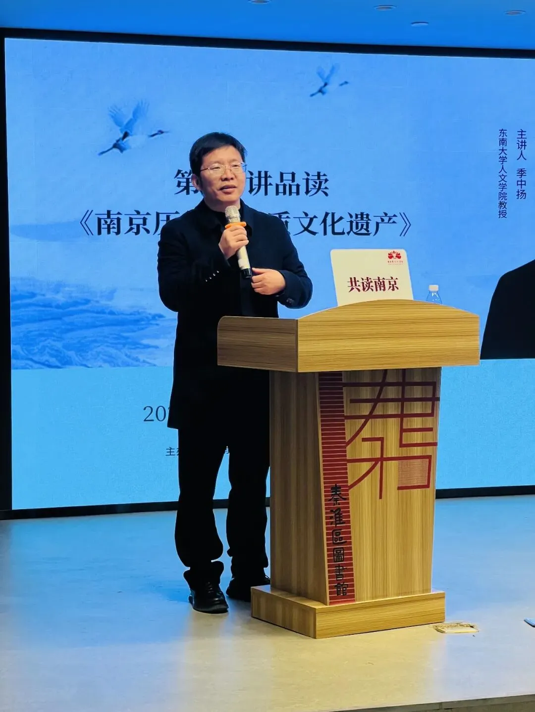 下午两点,江苏省民间文艺家协会副主席、东南大学人文学院教授季中扬应邀做客秦淮区图书馆开讲《书香南京大讲堂》,带领大家共同品读《南京历代非物质文化遗产》一书。该书系统收录南京地区108项入选世界级、国家级及省级非遗名录的项目,内容涵盖秦淮灯彩、浦口项羽传说、金陵刻经、云锦织造等特色项目。