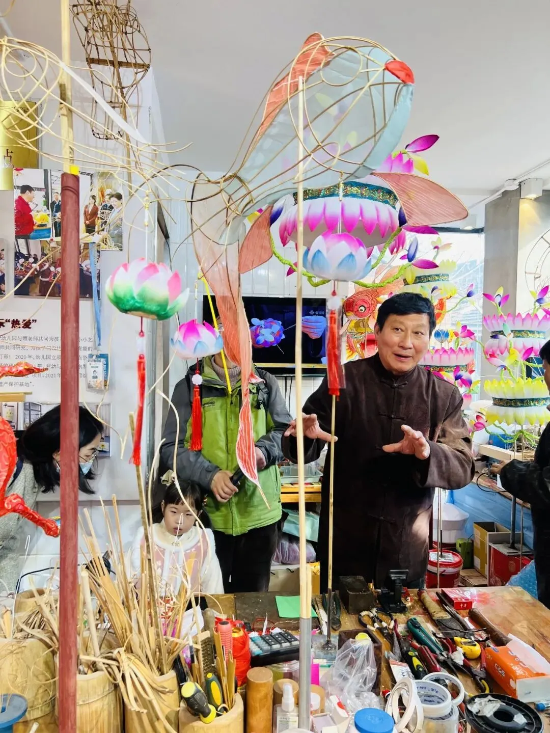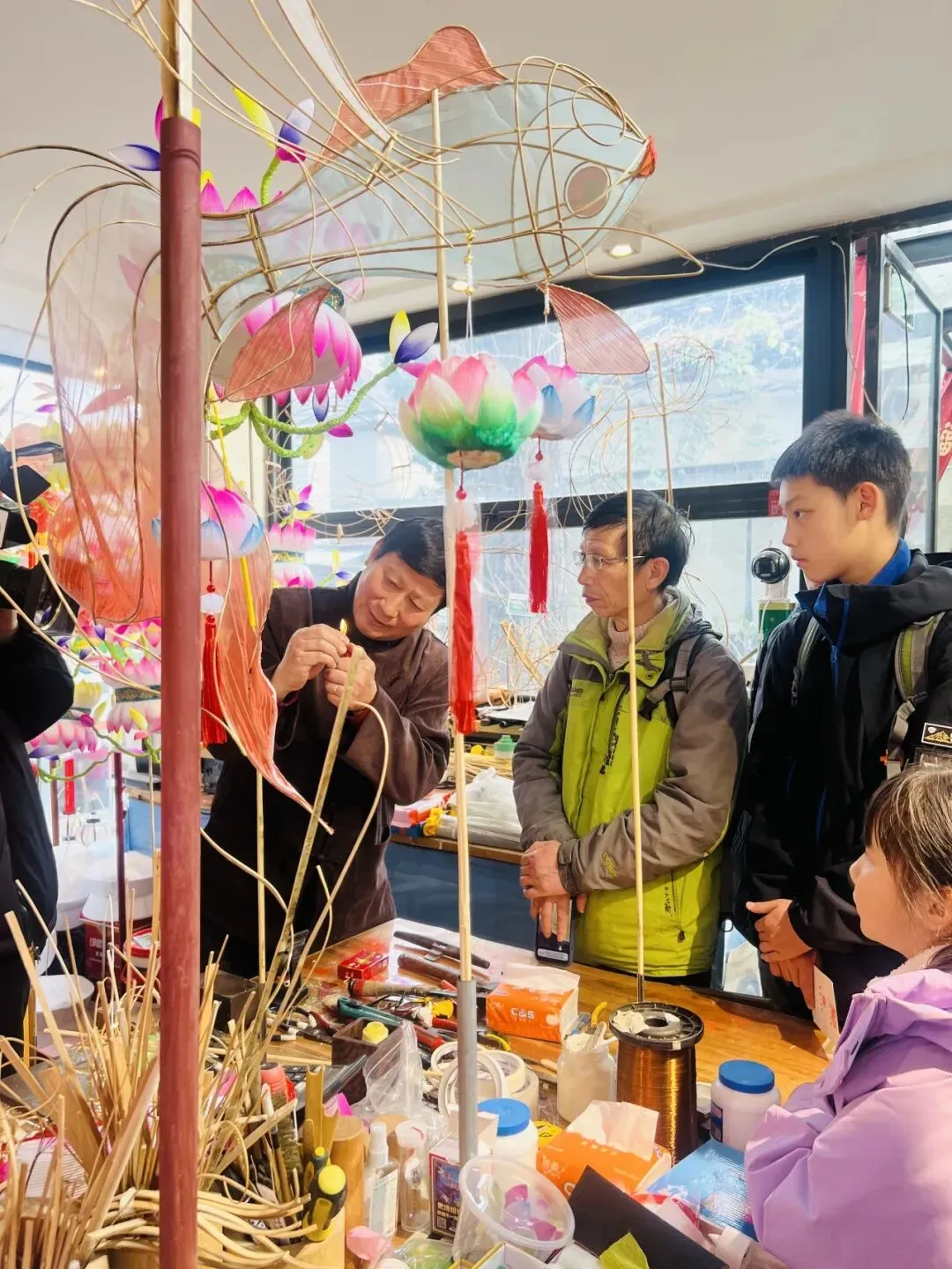 随后,“跟着大师走读非遗学做秦淮灯彩”为主题的“读城”活动先后走进秦淮•非遗馆和顾业亮大师工作室。