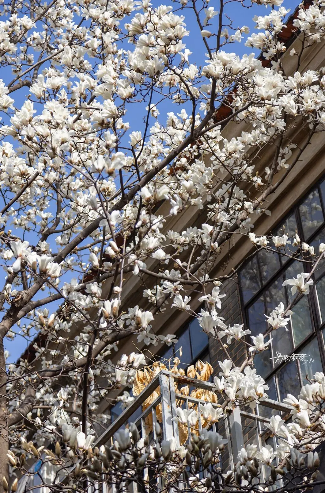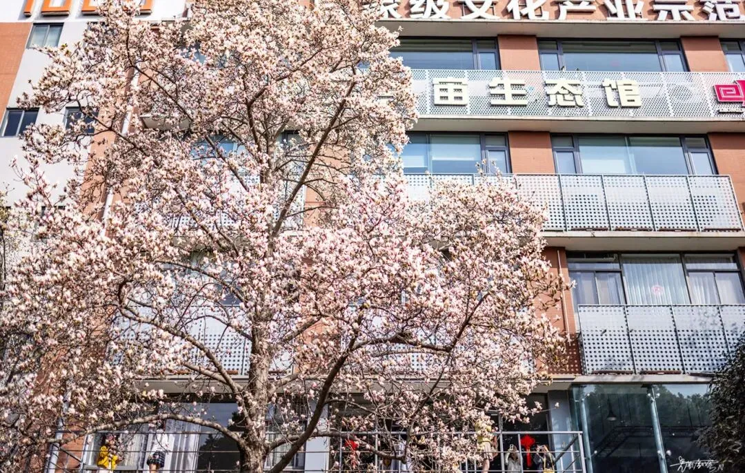 新芽与老厂房在光影里对话把玉兰盛景装裱成会呼吸的油画