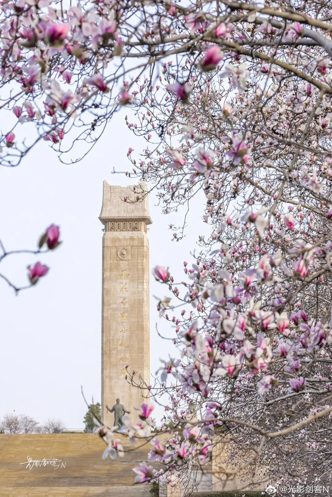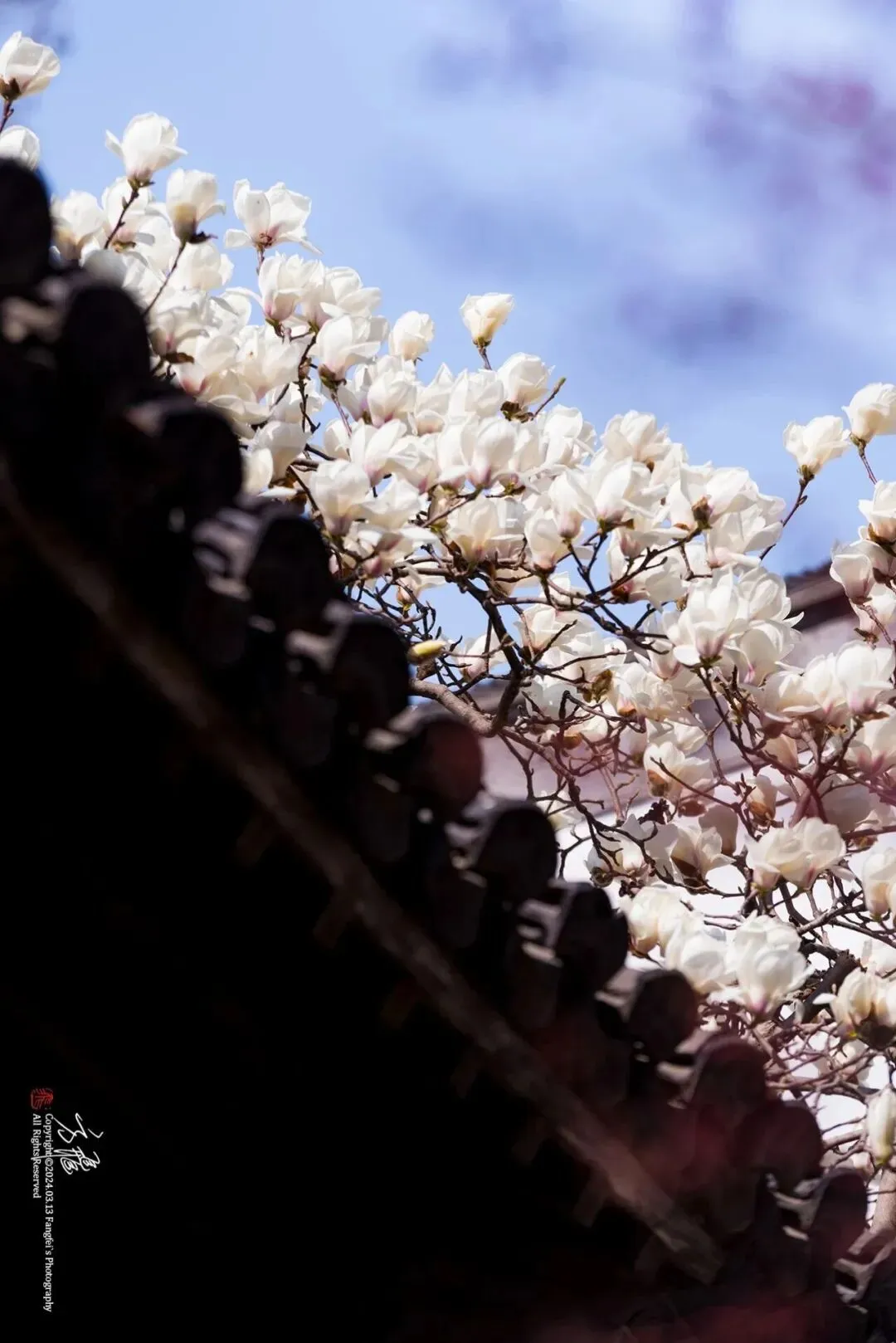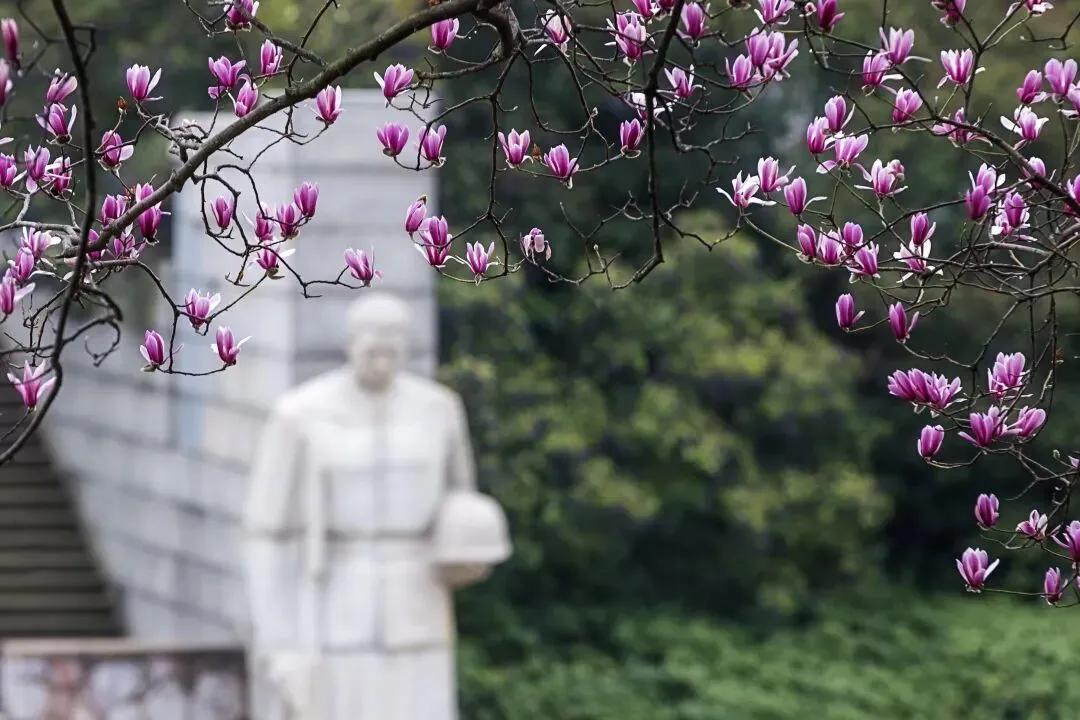 万仞宫墙西侧的紫玉兰娇艳欲滴