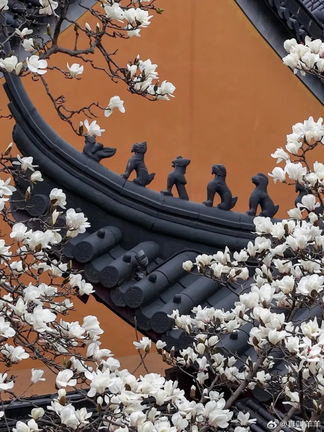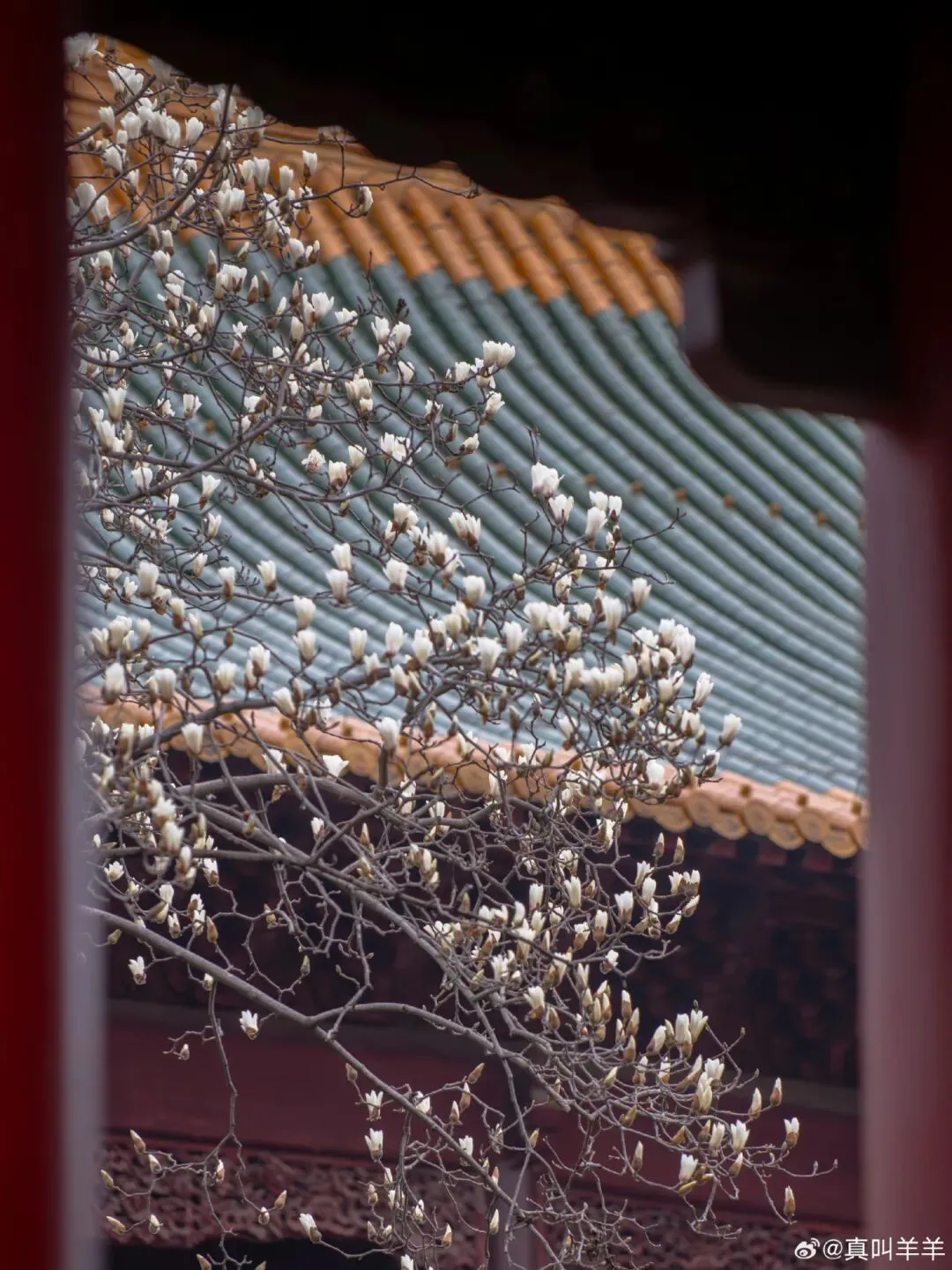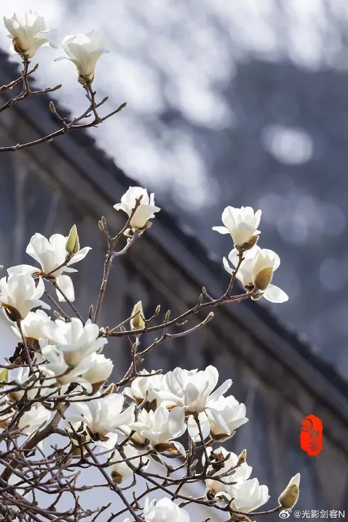 琉璃瓦、红墙、玉兰同时入镜