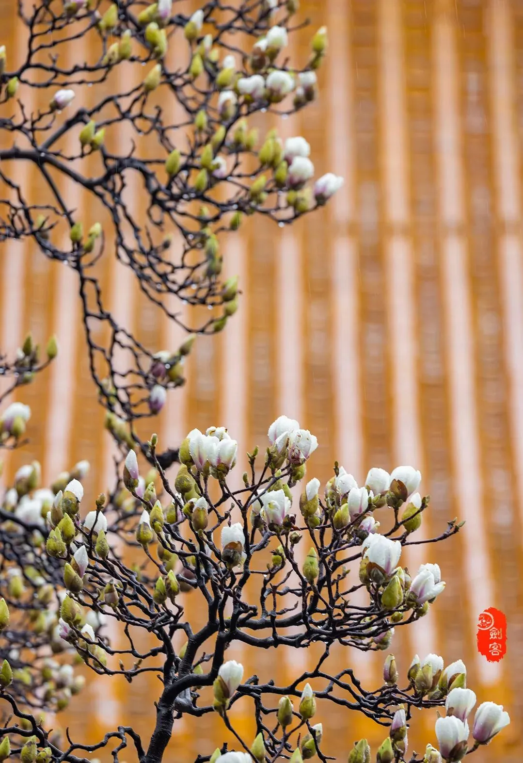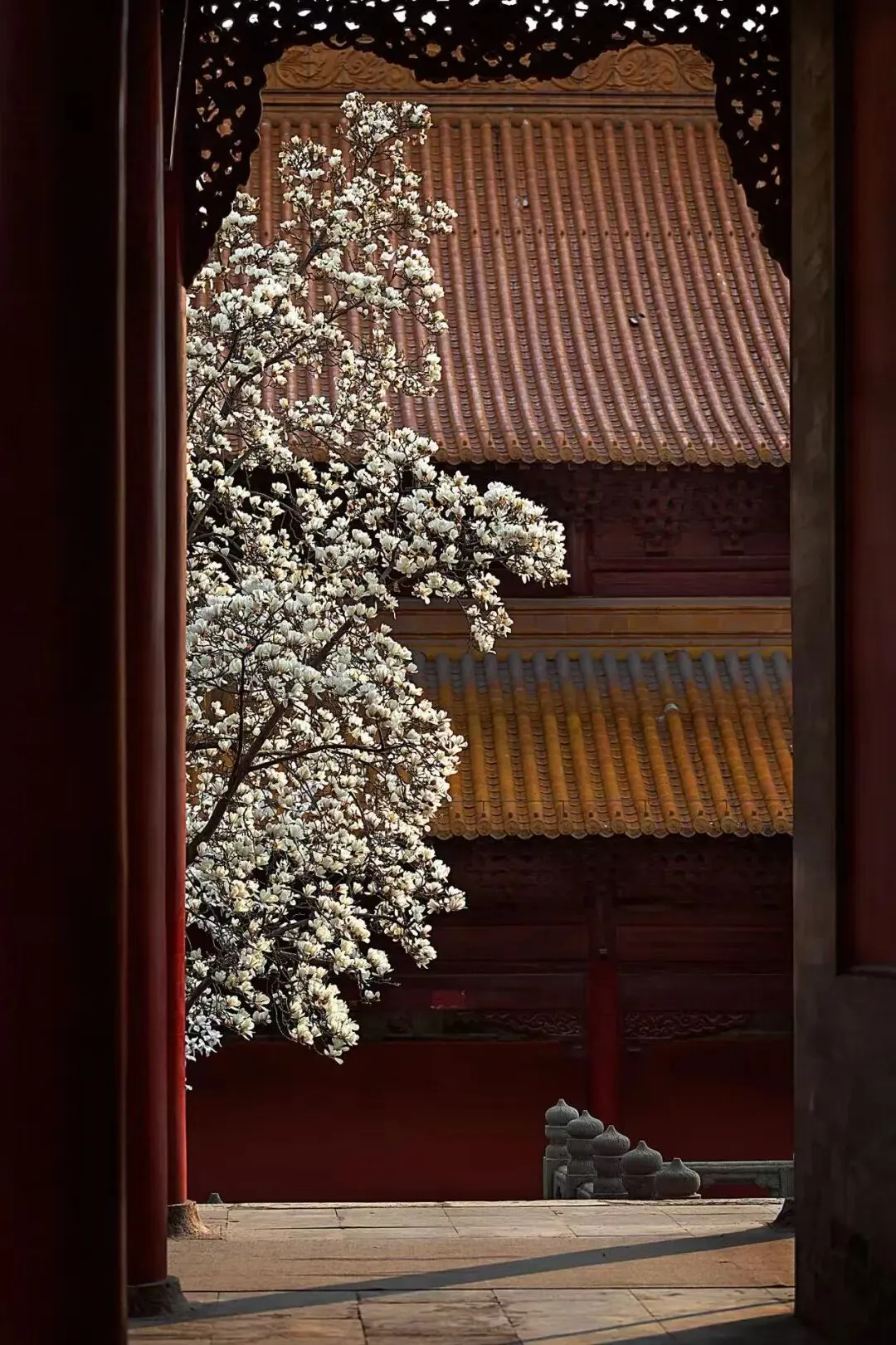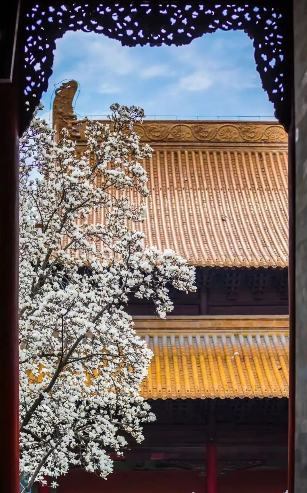 琉璃瓦、红墙、玉兰同时入镜