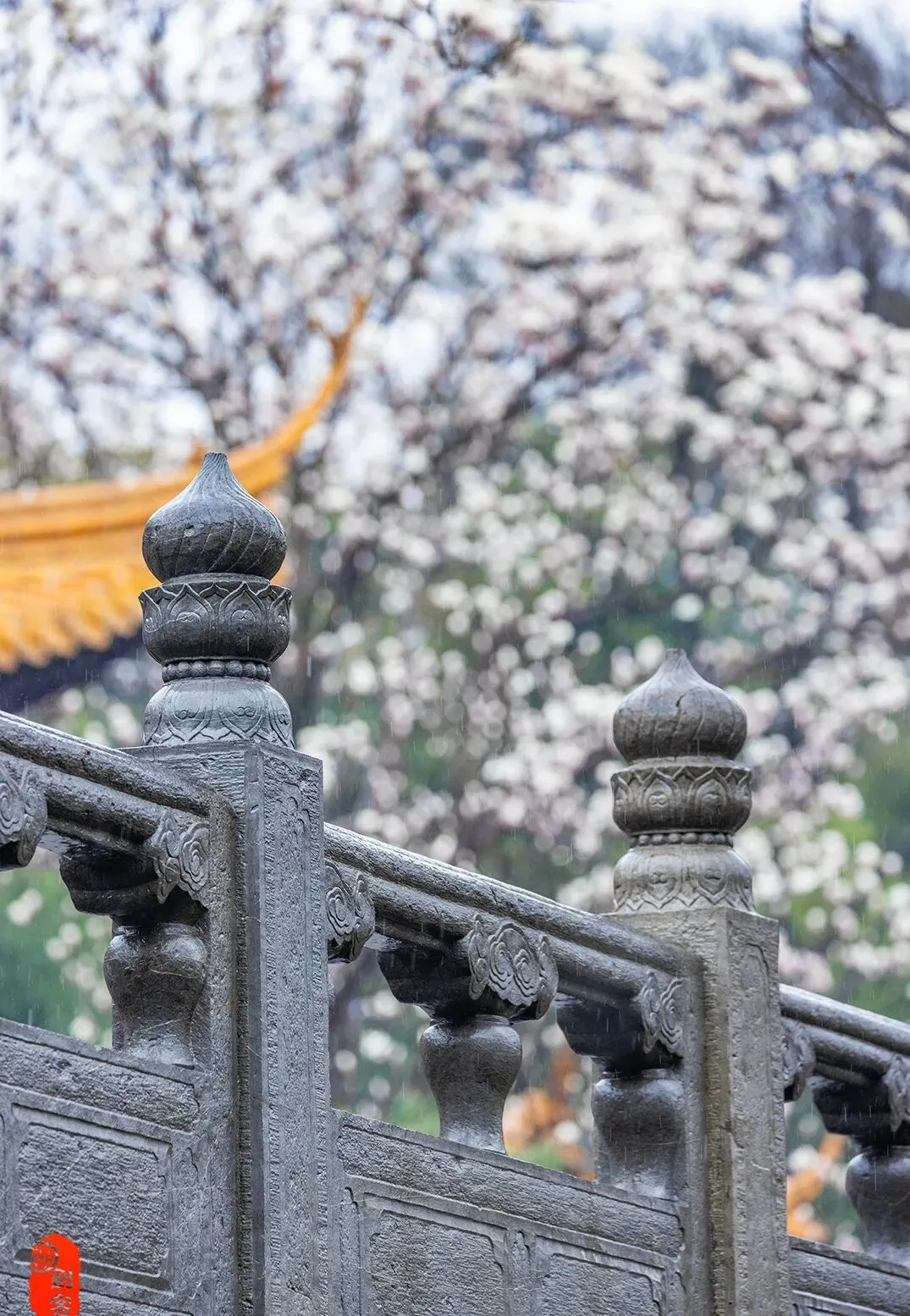 柔和的雨幕中