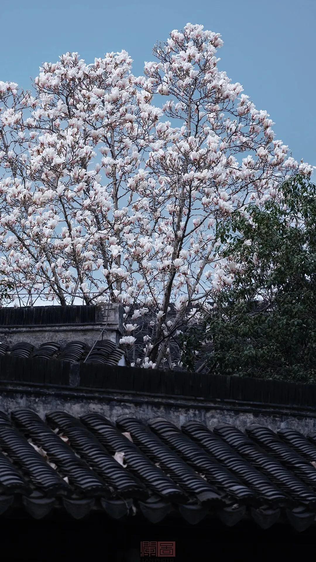 崇圣殿前的白玉兰连片绽放
