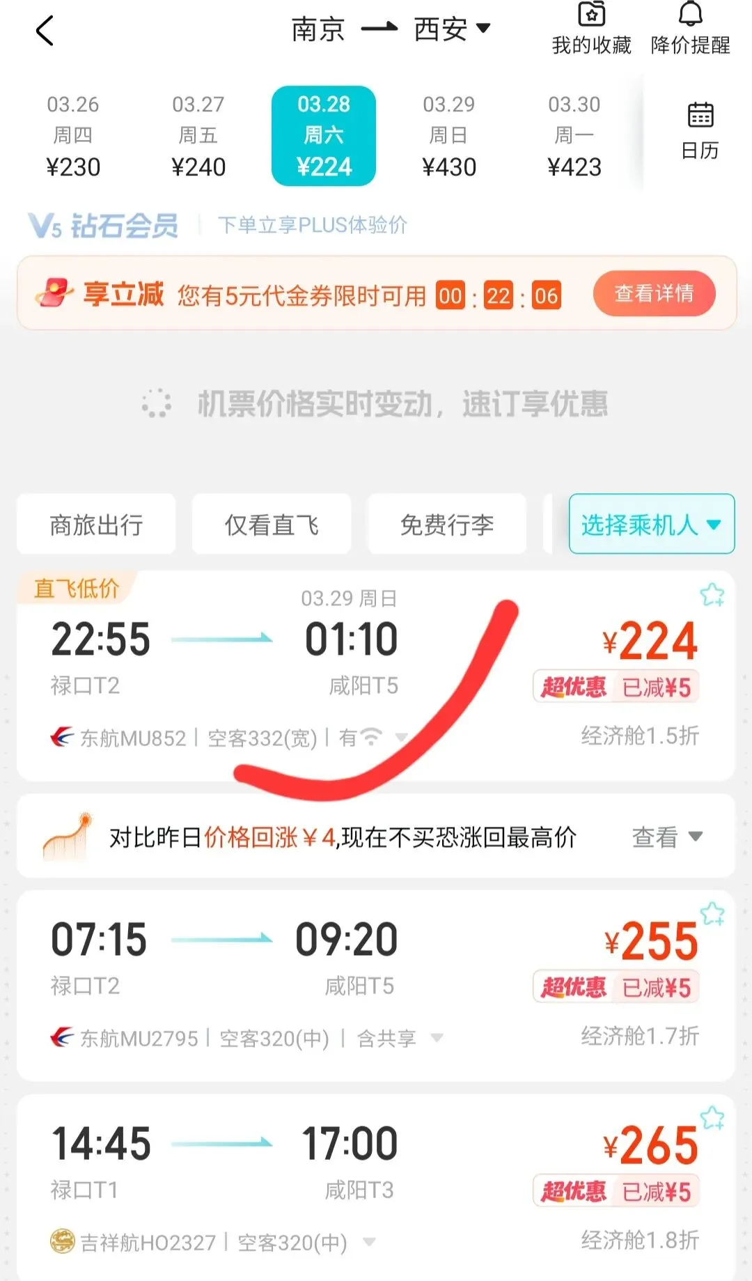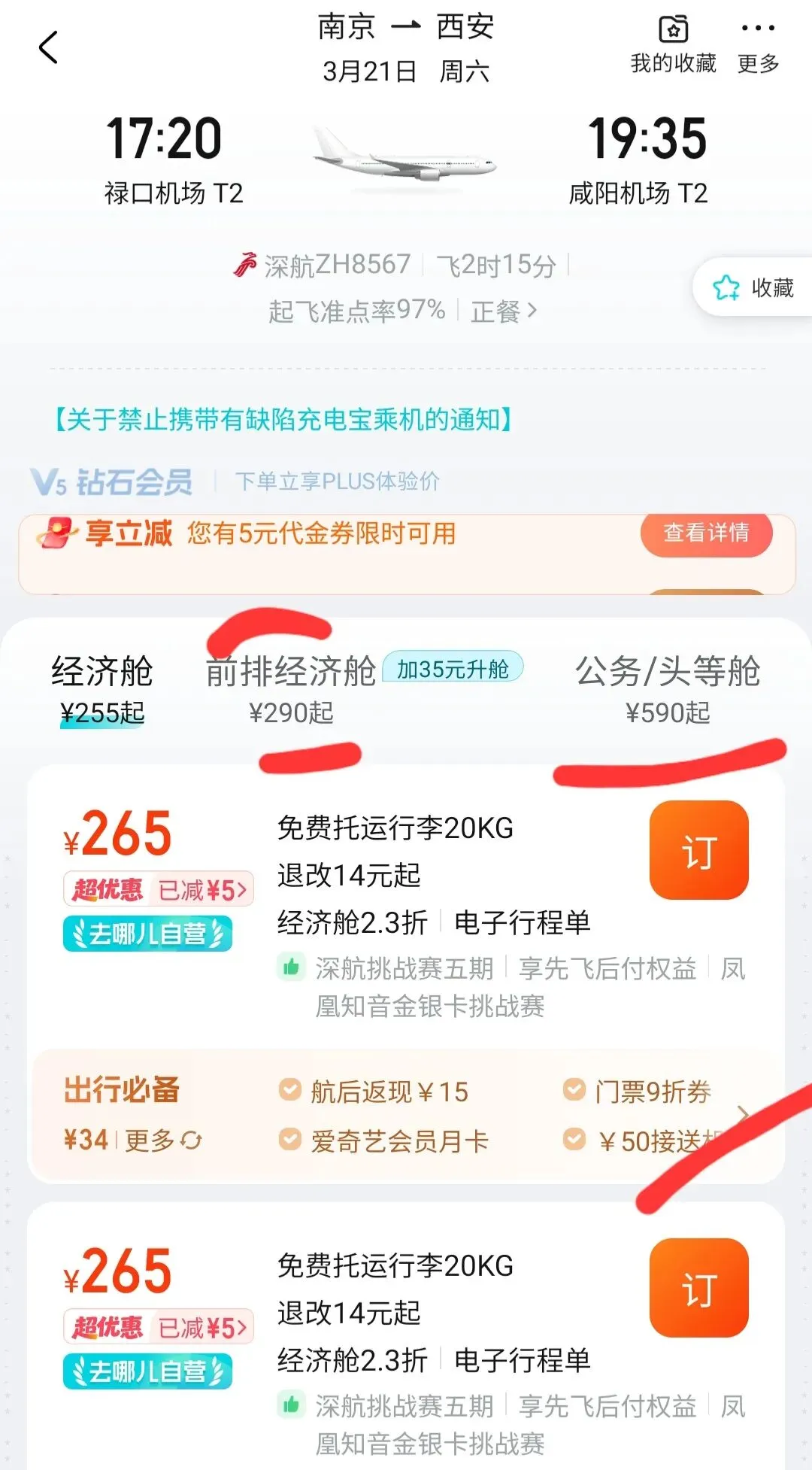 南京机场始发价格很优惠的,所以还是很羡慕南京机场的~