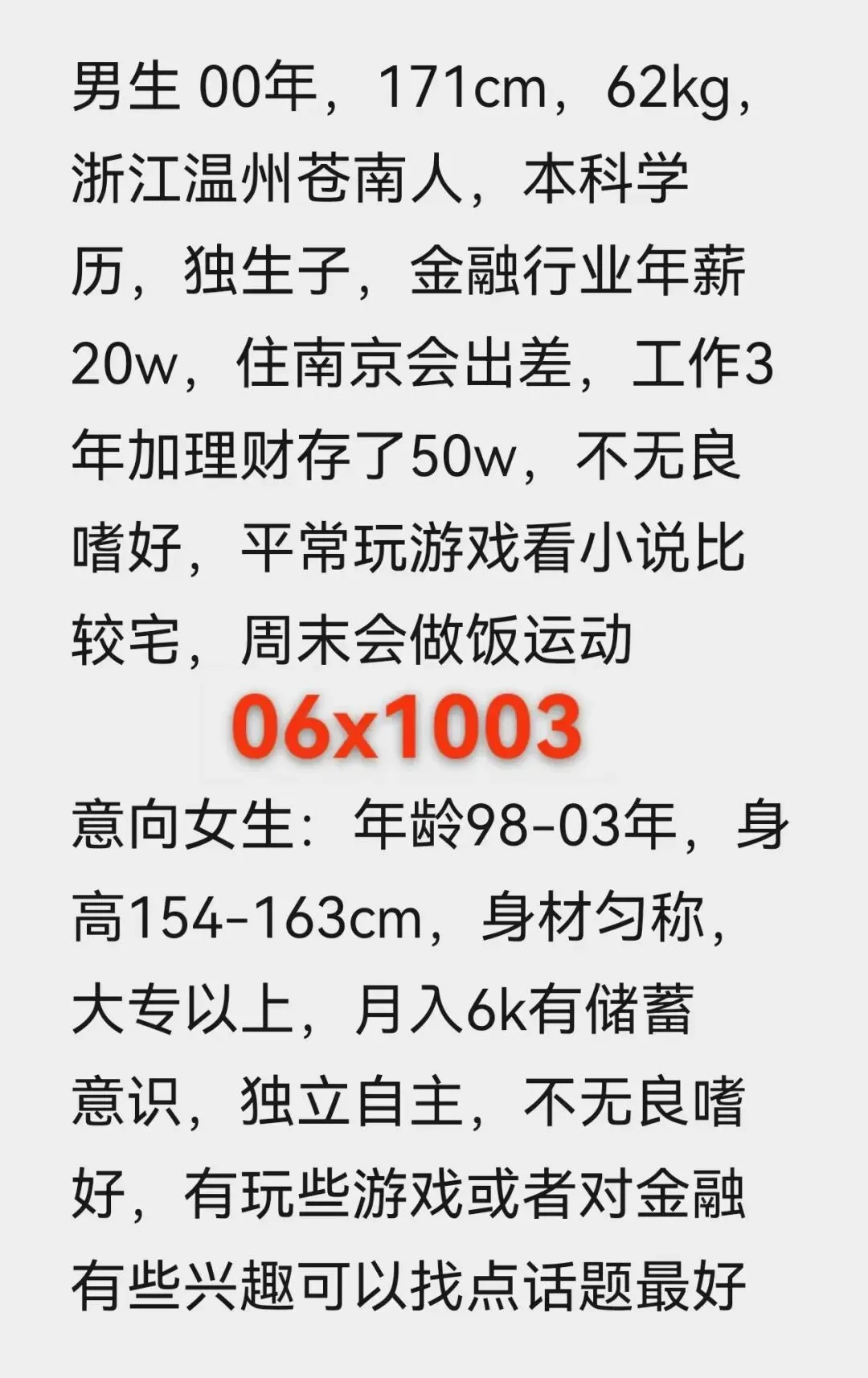 这是一个浮躁的时代,也是一个认识人成本极低的时代,无效的人和事占据太多的时间,骗子、约炮、理财销售等等让我们产生焦虑、内耗,为了帮助大家节约时间,相亲宝公众号发帖人不公布联系方式,我们红娘负责过滤一些不靠谱的人,专门进行验证,核实。提示大家:相亲急切的心情可以理解,但相亲过程中不要有任何金钱往来,切记切记。精准一对一推荐介绍,唯一线下门店地址:秦淮区大行宫长安国际2307。