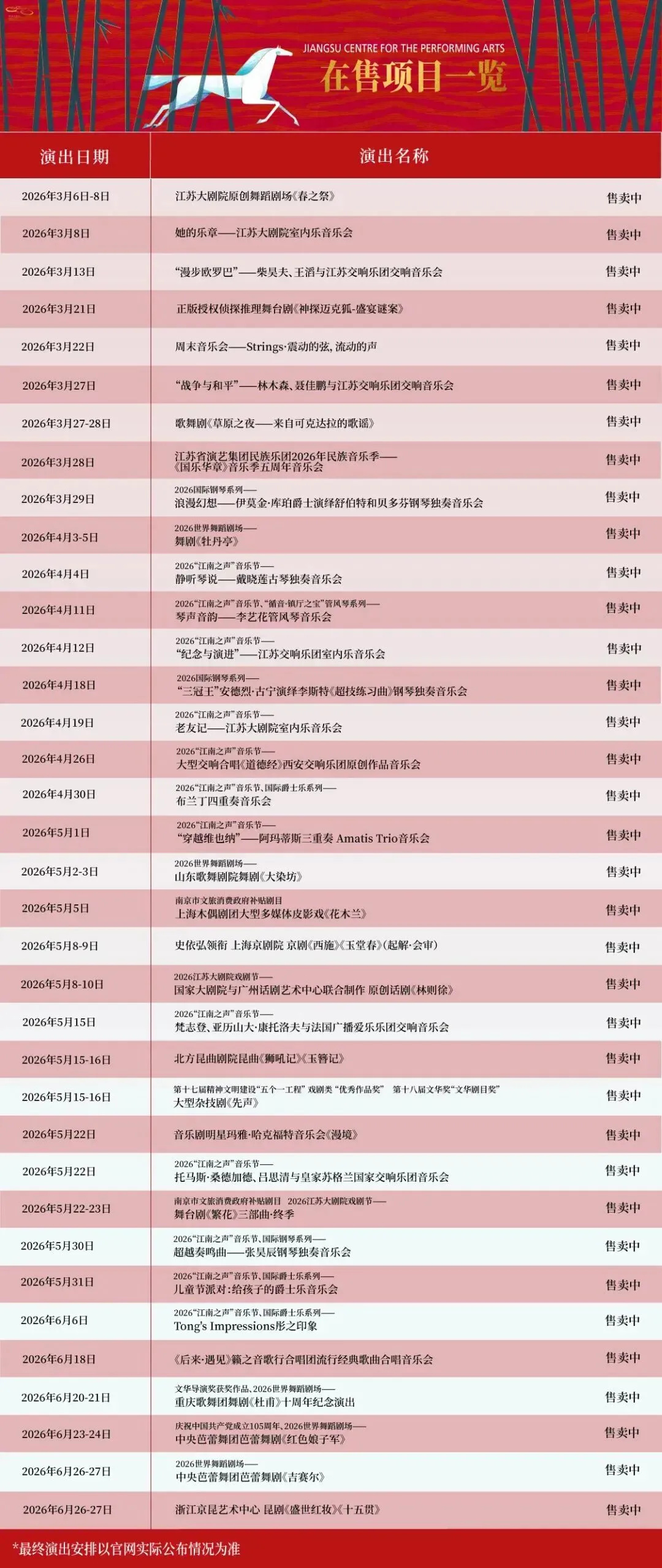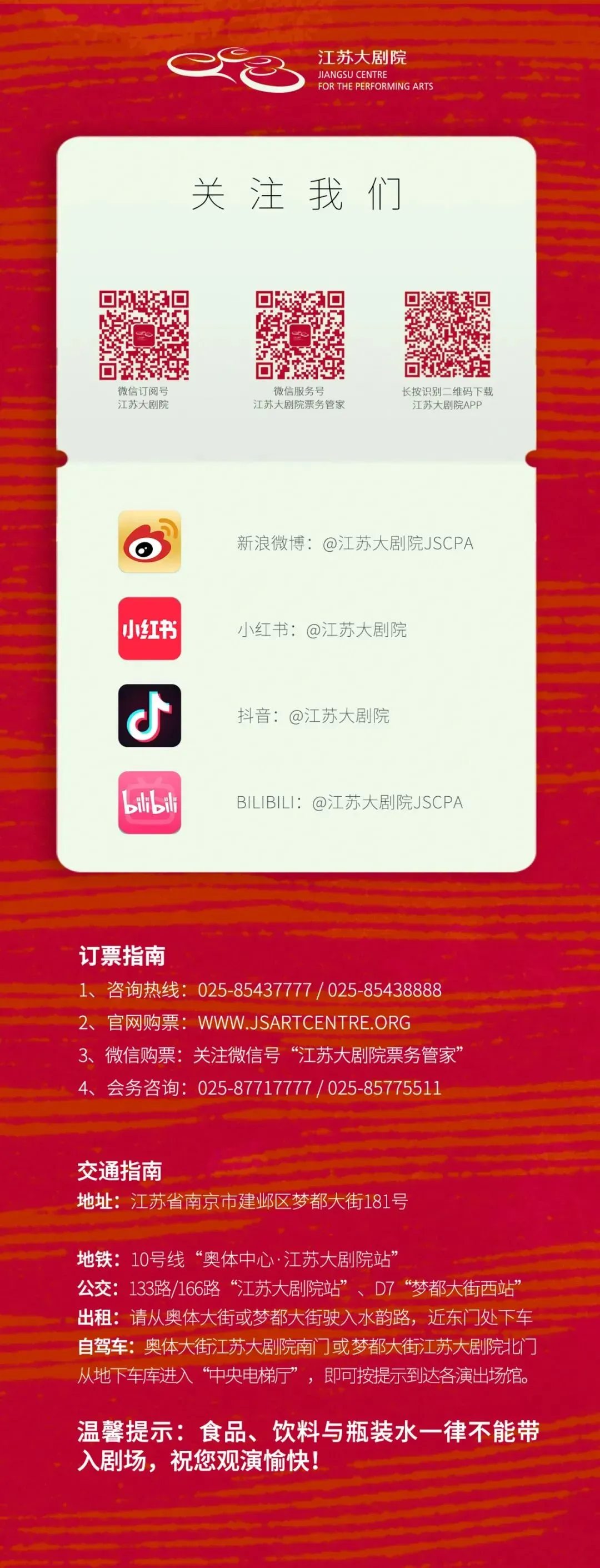 会员政策:可使用江苏大剧院会员卡折扣(98折、95折、88折);