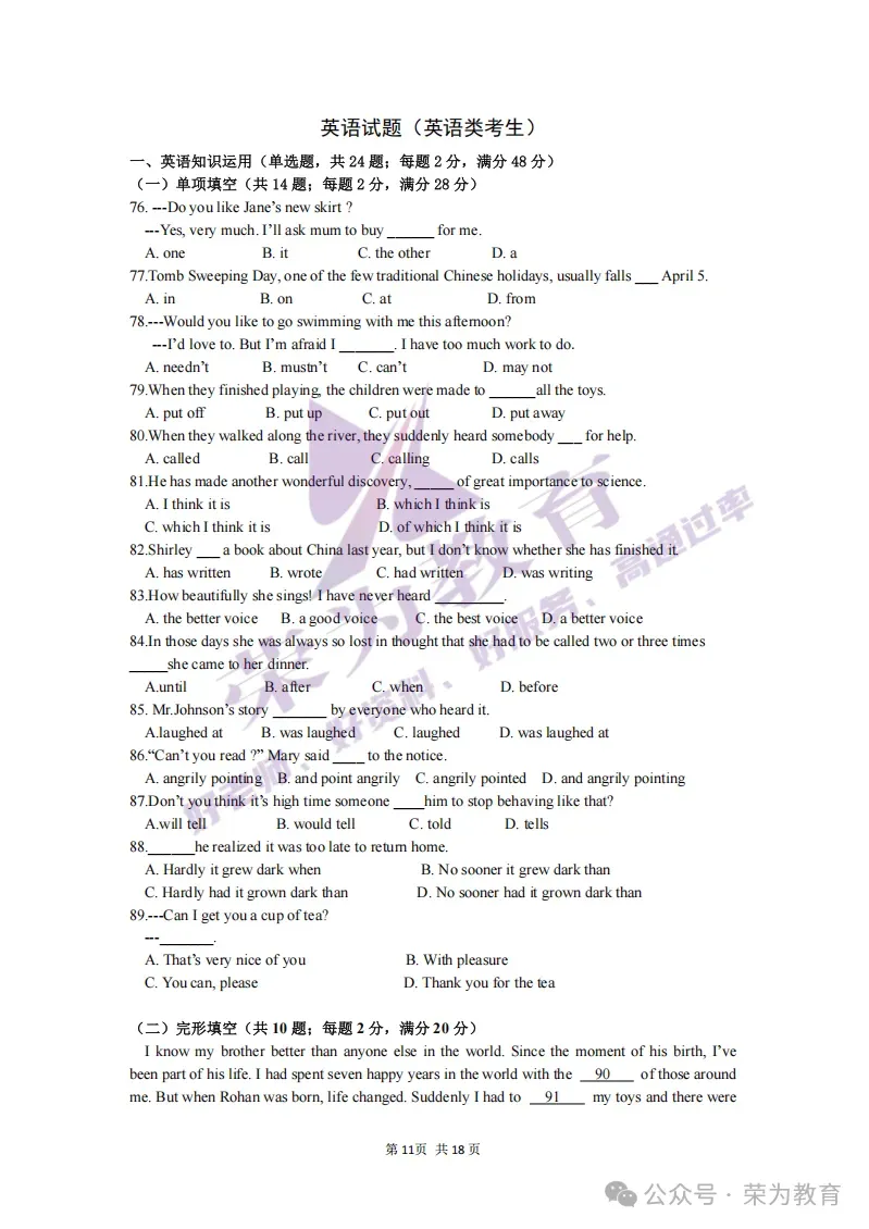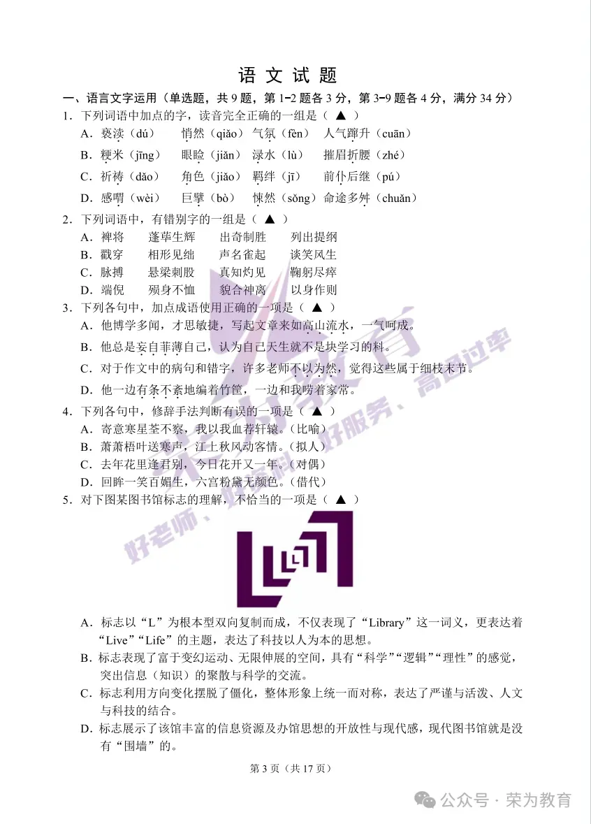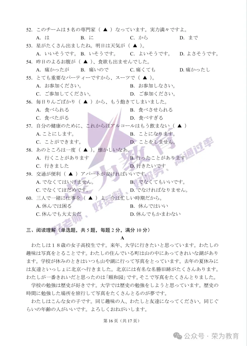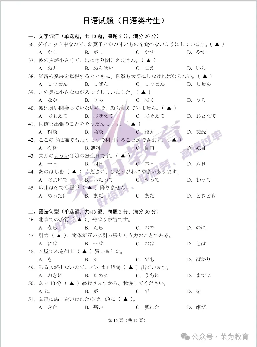 >2021-2024南京铁道职业技术学院高职单招语文数学英语日语职业测试试卷+答案