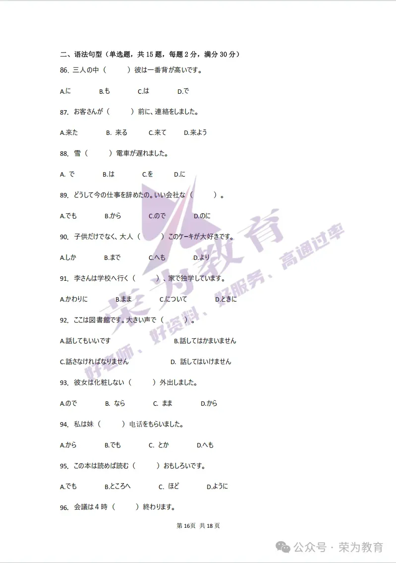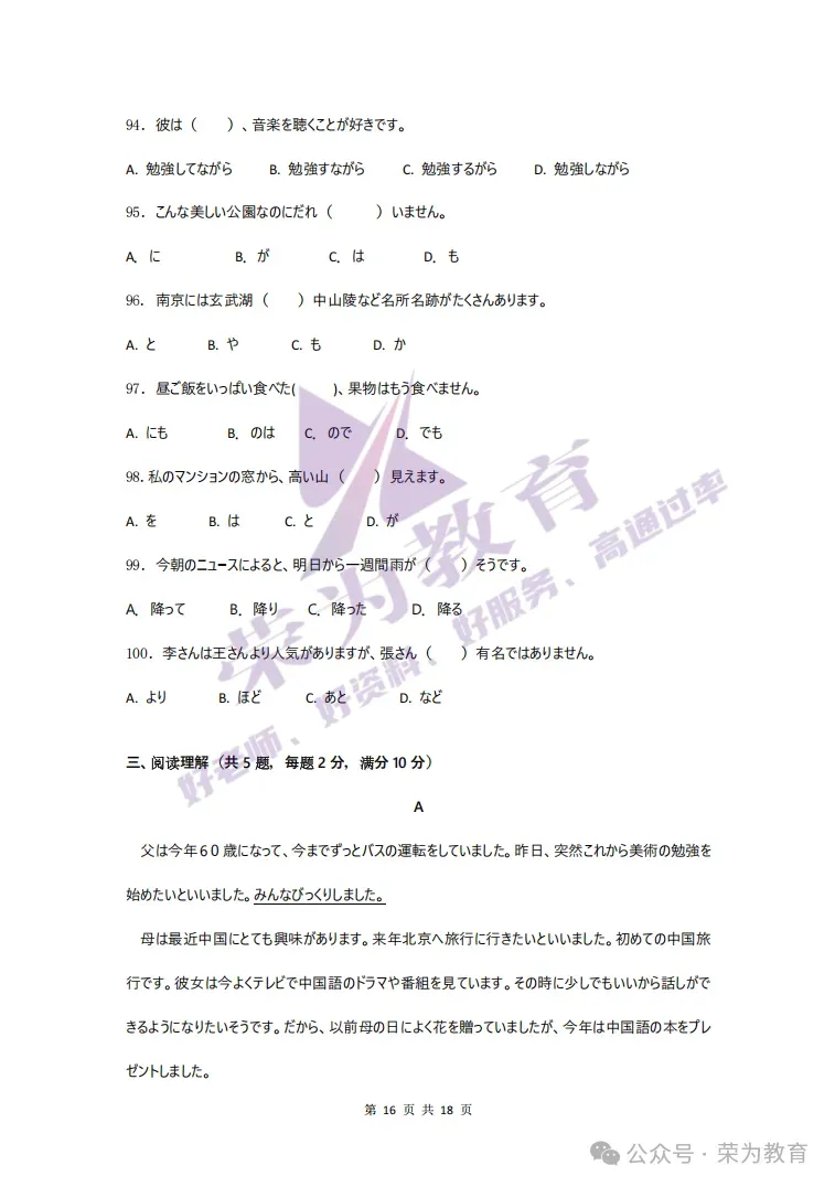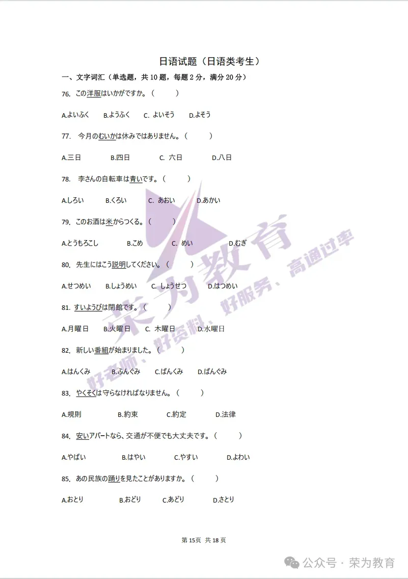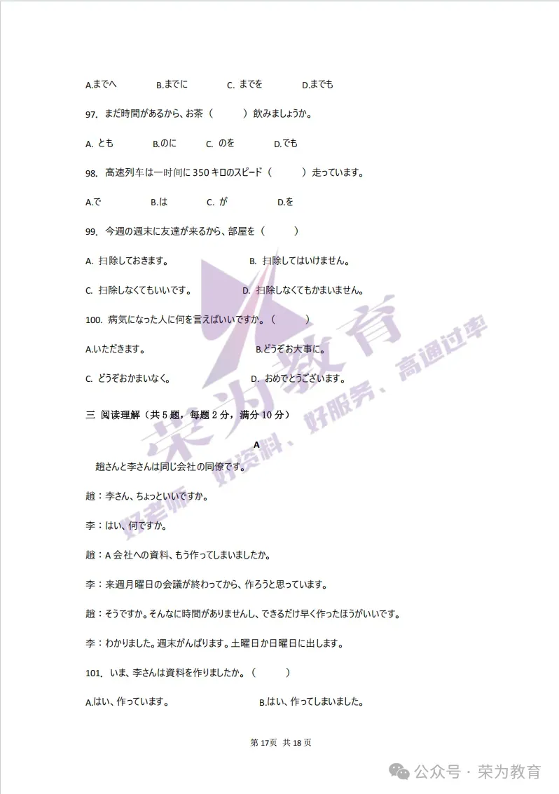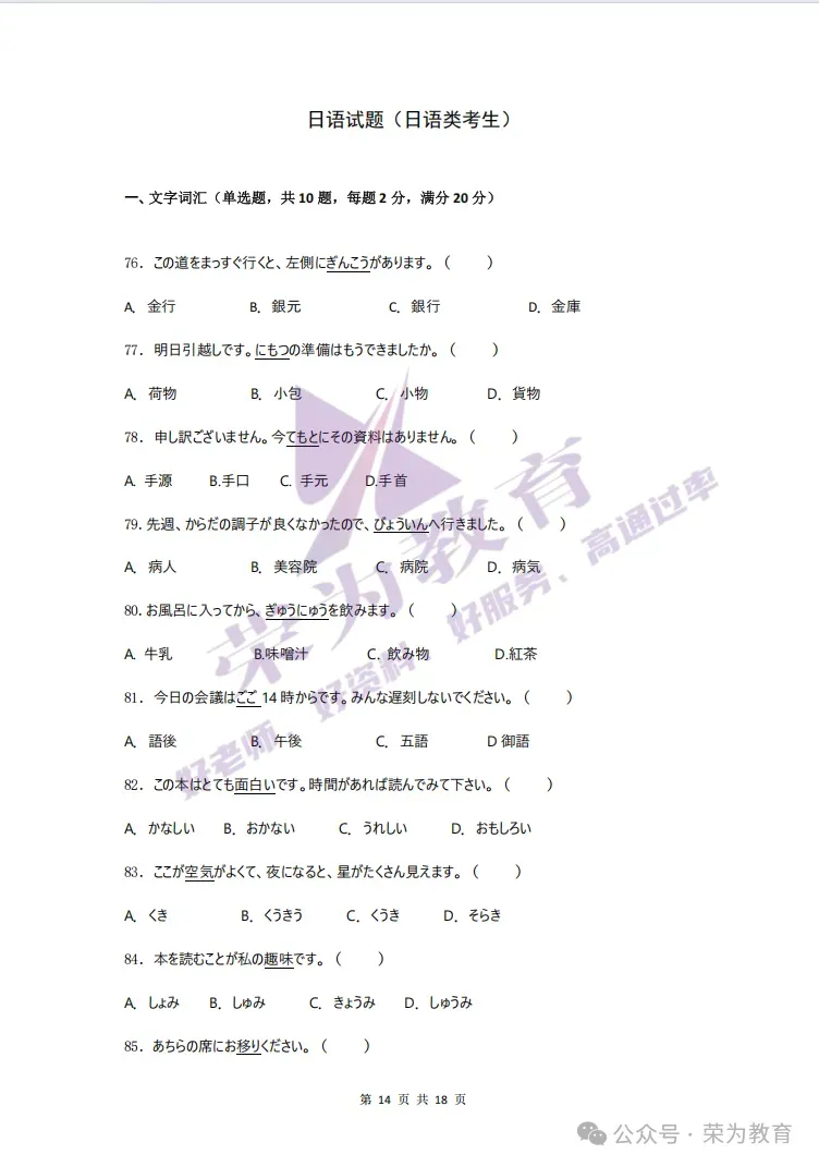 2021-2024南京铁道职业技术学院高职单招语文数学英语日语职业测试试卷+答案