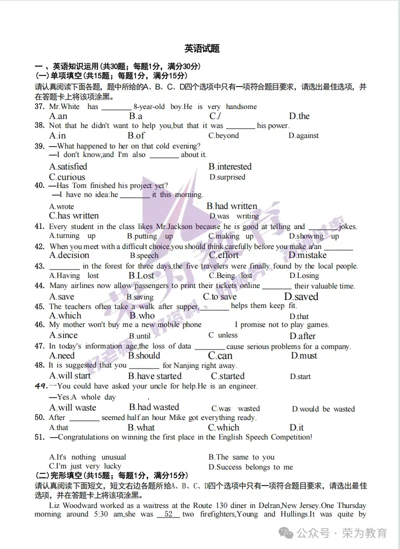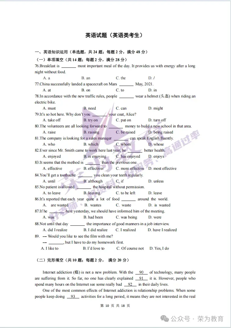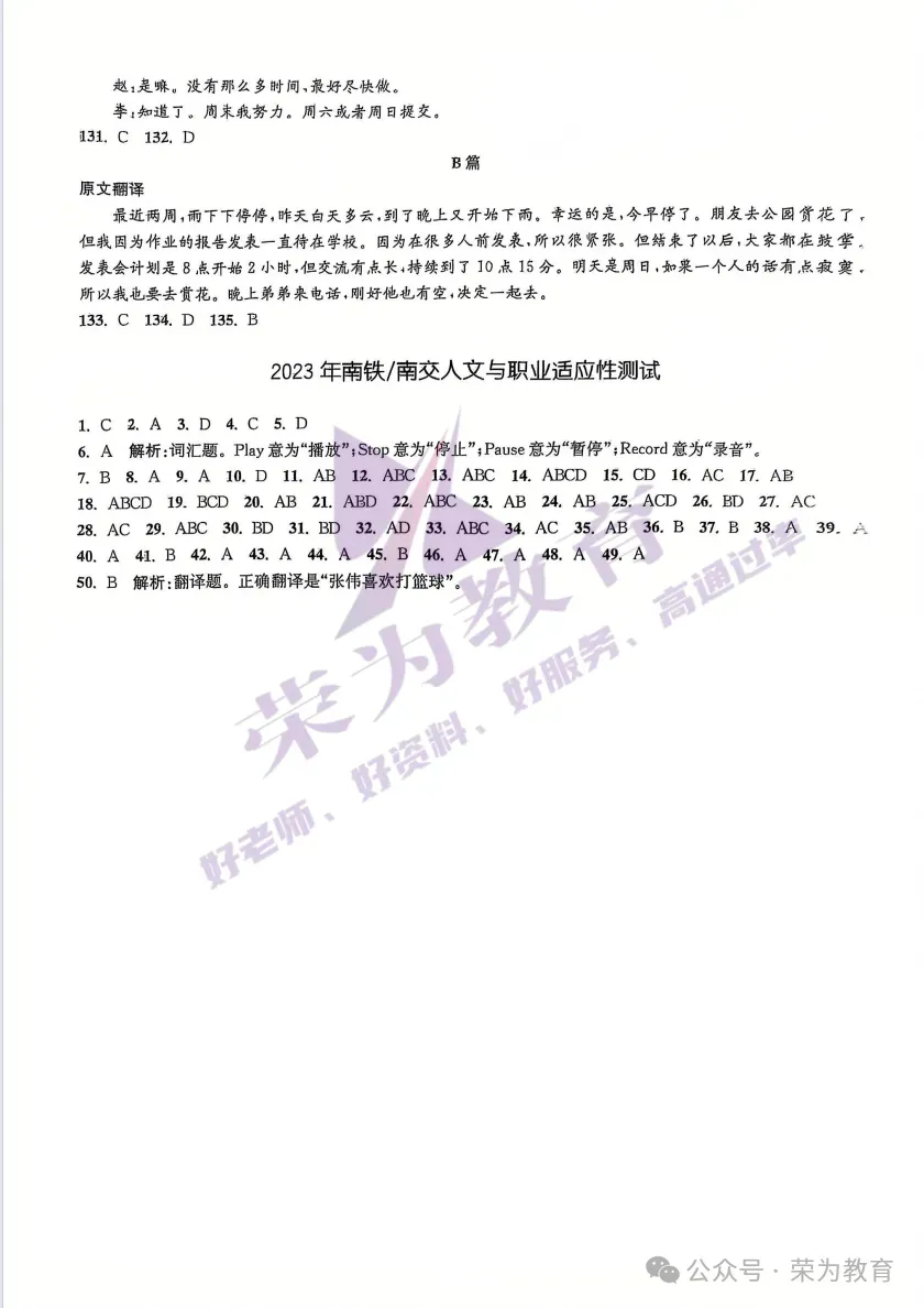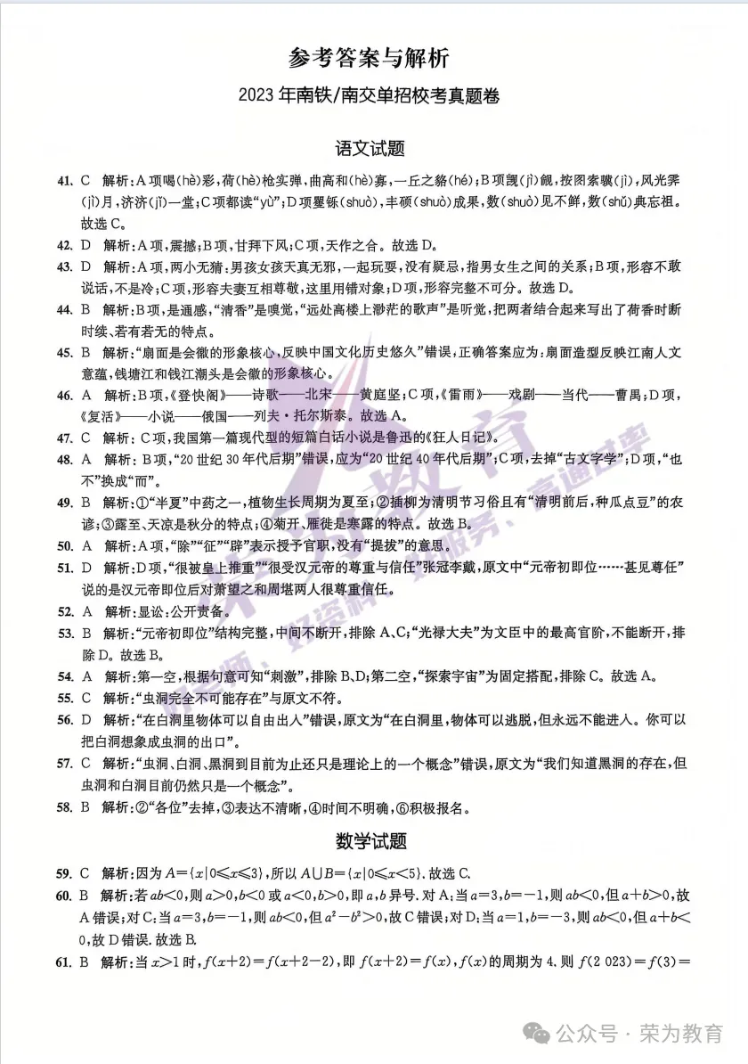 江苏高职单招历年真题:南京铁道职业技术学院(21年—24年)