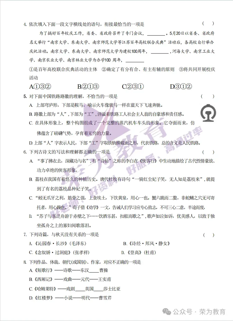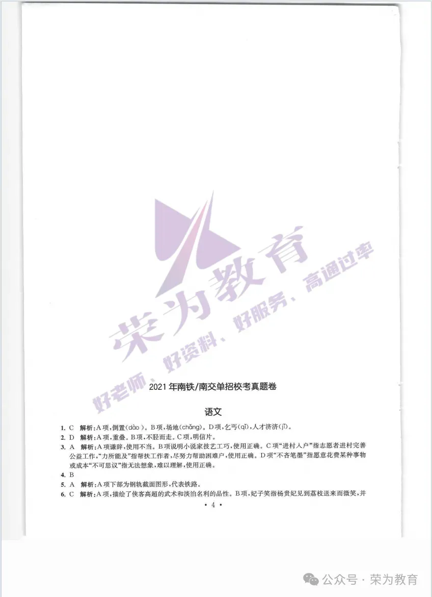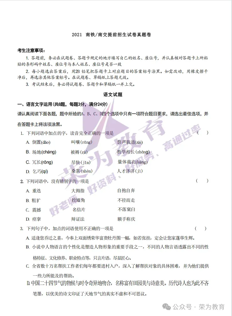 南京铁道职业技术学院高职单招历年真题(24年—21年)