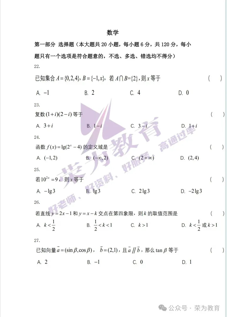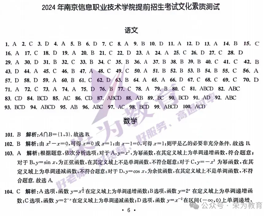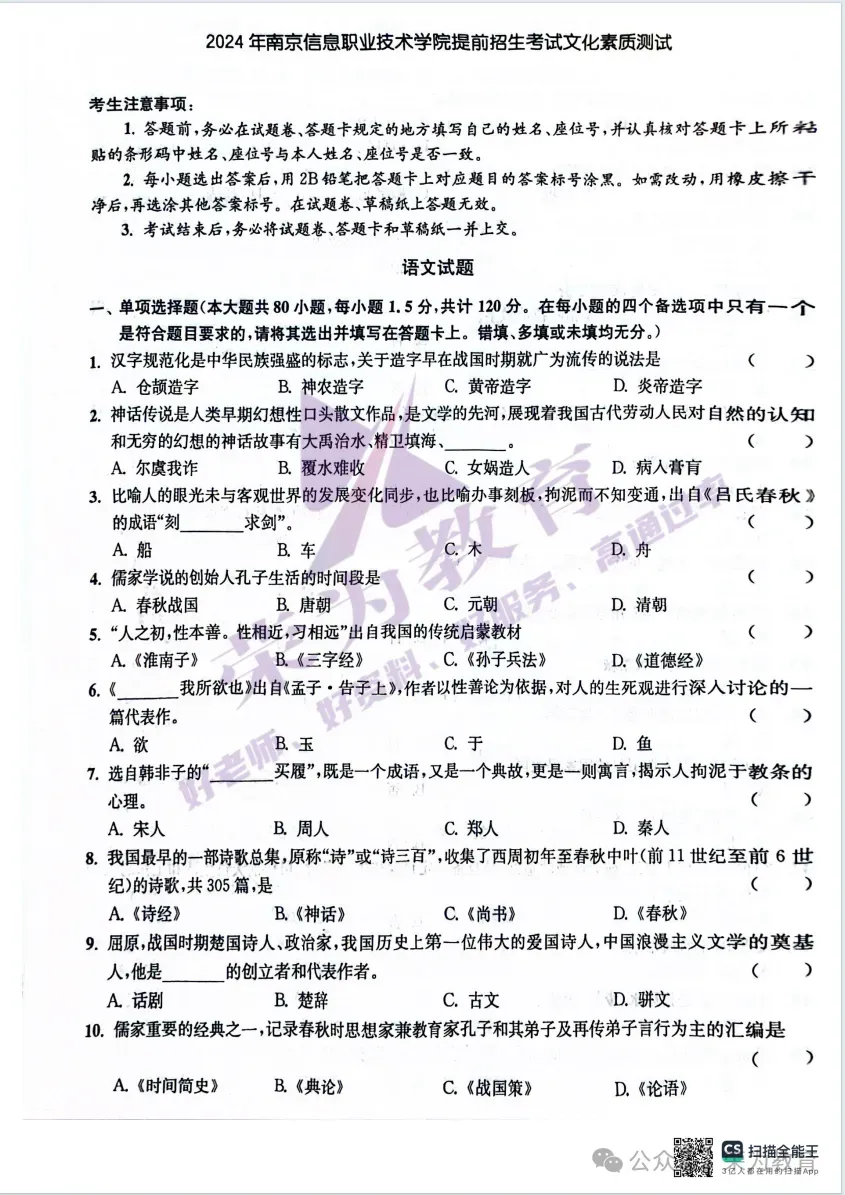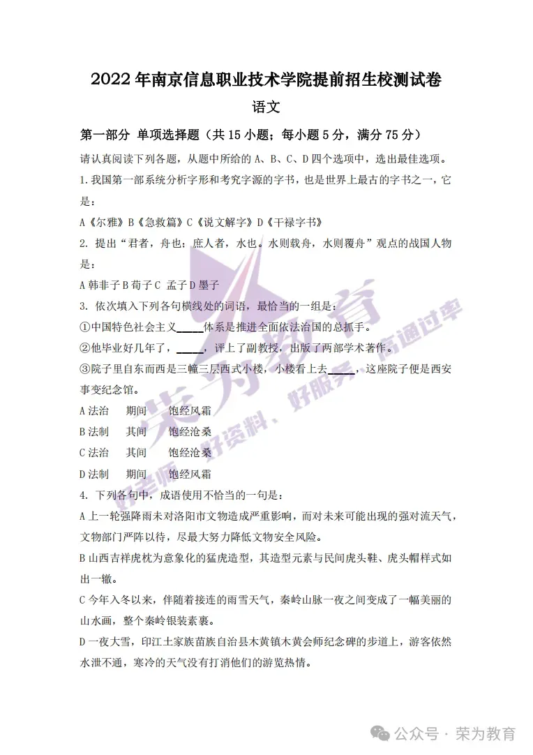 江苏高职单招历年真题:南京信息职业技术学院(2022、2024年)