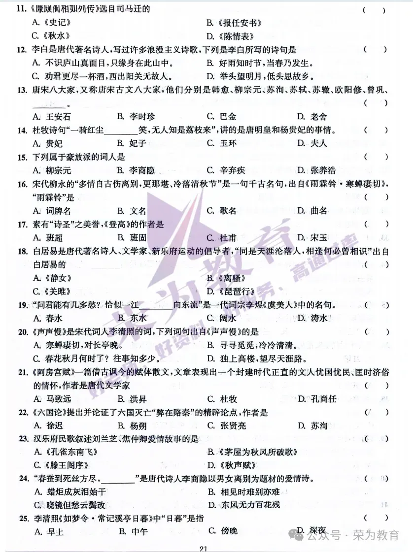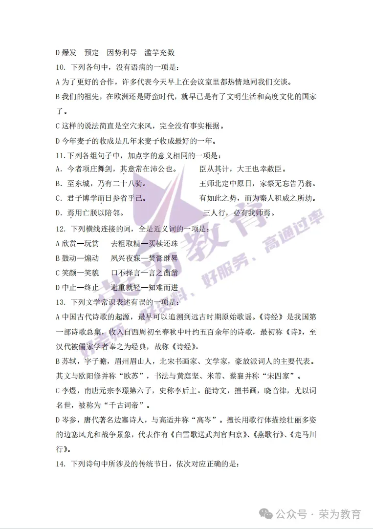 >2022-2024南京信息职业技术学院高职单招语文数学英语日语俄语试卷+答案