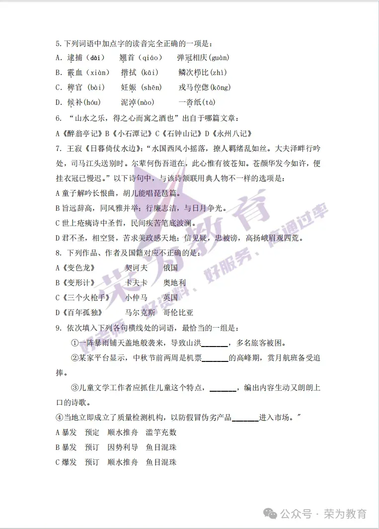 2022-2024南京信息职业技术学院高职单招语文数学英语日语俄语试卷+答案
