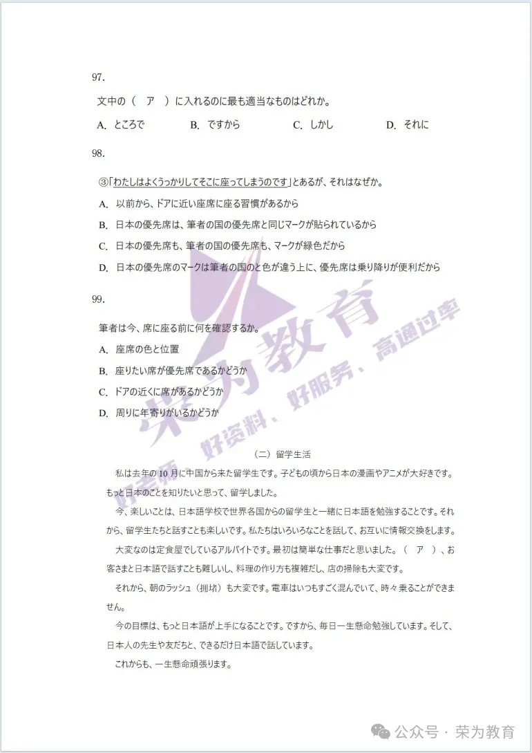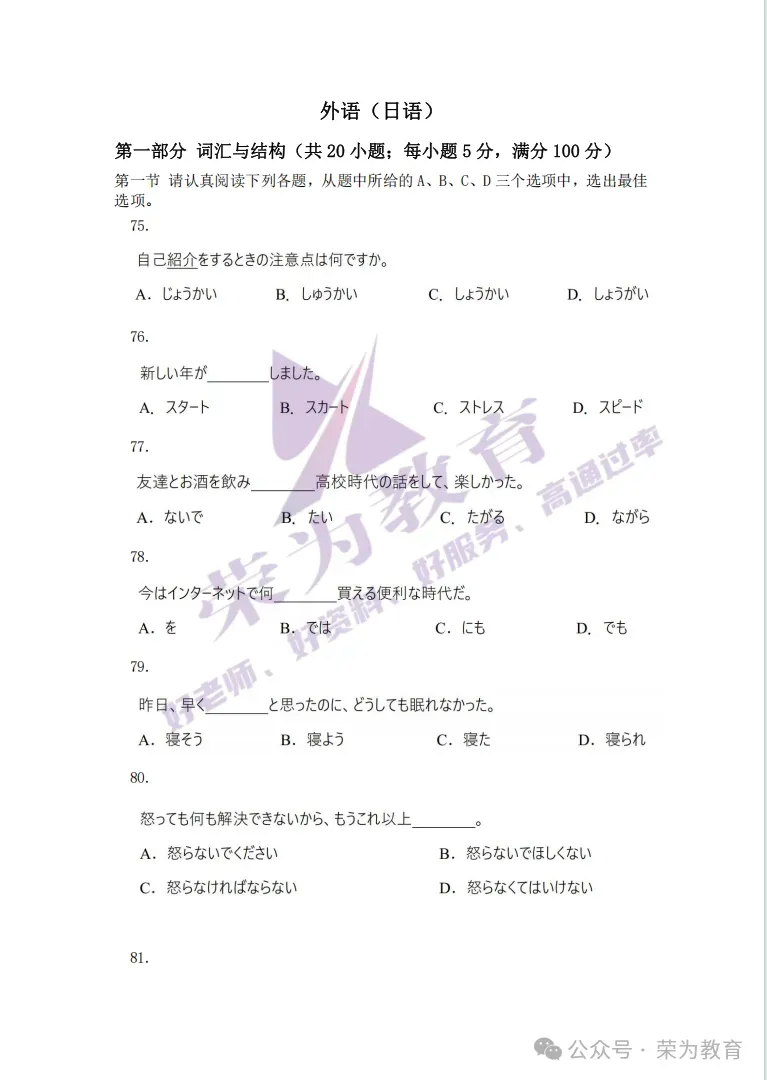 2021-2024南京铁道职业技术学院高职单招语文数学英语日语职业测试试卷+答案
