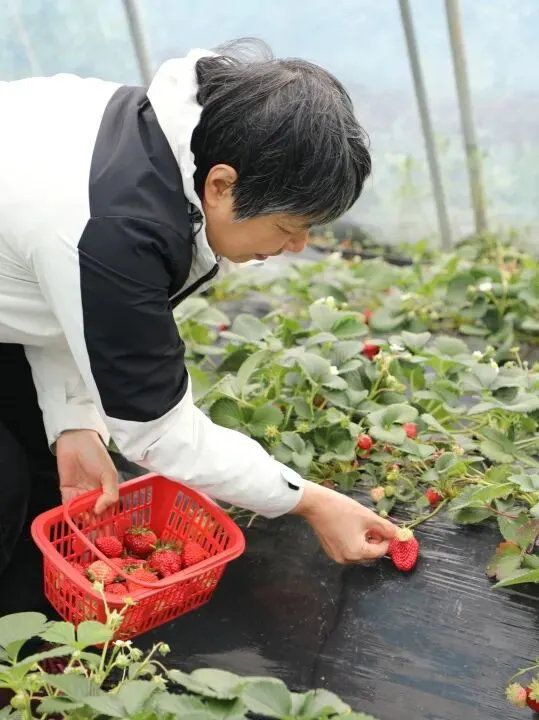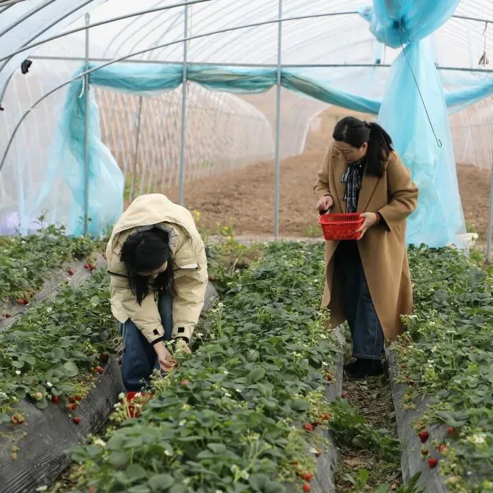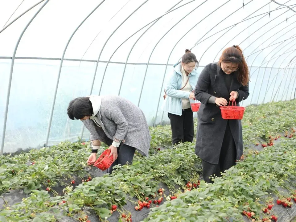 暖春大棚内,绿意盎然、果香四溢。翠绿藤蔓间,颗颗草莓饱满红润、鲜嫩欲滴,宛如散落田间的红宝石。大家手提果篮,俯身轻摘,细心挑选成熟果实,笑语盈盈穿梭其间。平日里严谨干练的法律人,此刻尽显温柔惬意,田间处处洋溢着轻松愉悦的氛围。