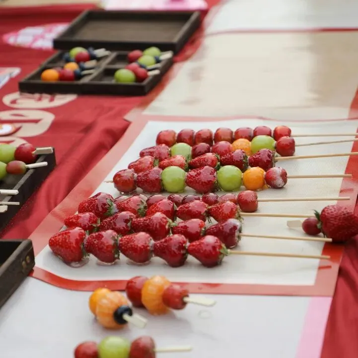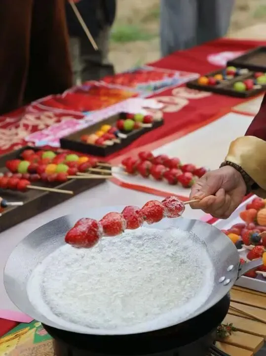 采摘过后,手工糖葫芦制作环节温情开启。新鲜草莓洗净装盘,大家手持竹签,将颗颗亲手采摘的甜莓细心串起;一旁糖浆咕嘟冒泡,香气弥漫。在老师的指导下,大家轻转果串、均匀挂浆,待糖衣冷却,一串串晶莹剔透、果香浓郁的糖葫芦新鲜出炉。亲手制作的甜意,裹着春日暖意,让在场每一位都收获满满幸福感。