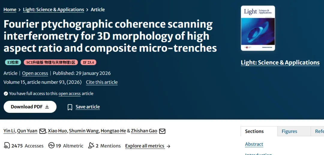 Li,Y.,Yuan,Q.,Huo,X.et al.Fourier ptychographic coherence scanning interferometry for 3D morphology of high aspect ratio and composite micro-trenches.Light Sci Appl 15,93(2026).