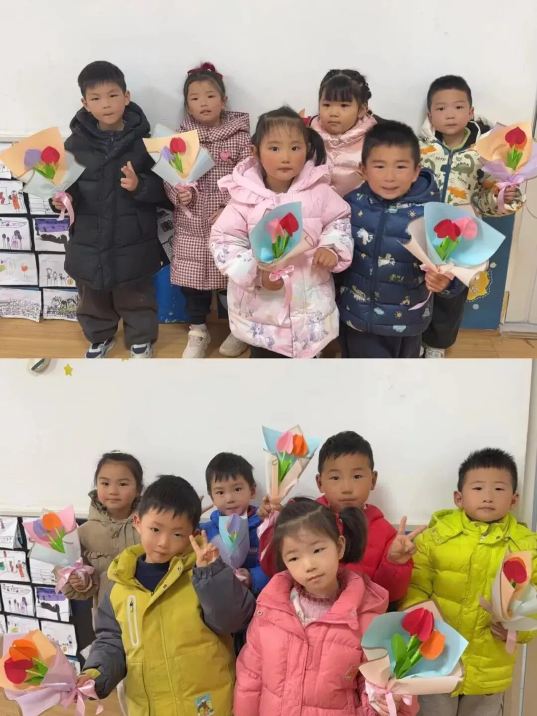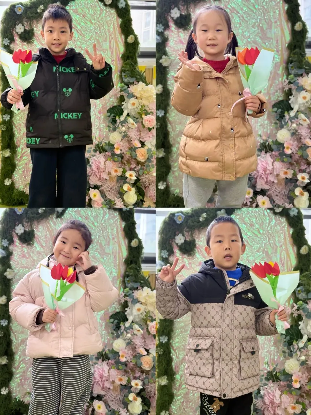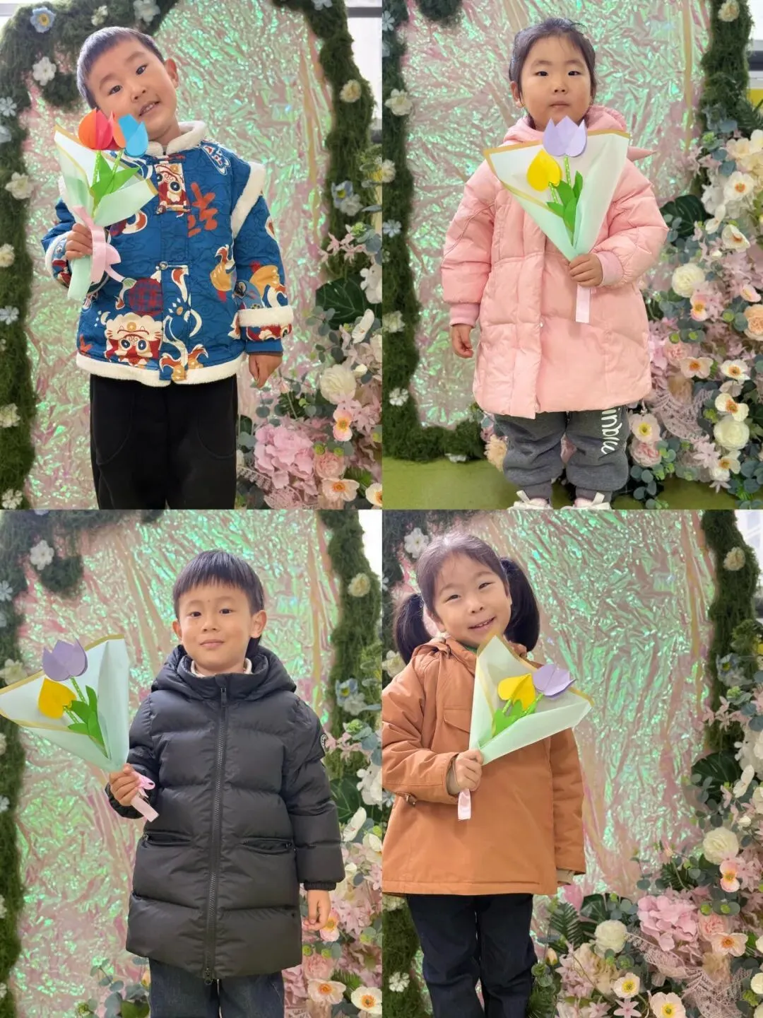 中班组的宝贝们手工制作《郁金香》花束。他们用稚嫩的小手,将彩色的材料一点点组合,每一朵郁金香都饱含着对妈妈、奶奶、外婆和老师们深深的爱。当孩子们把这份礼物送出时,那灿烂的笑容仿佛在说:“愿您如这郁金香般优雅美丽!”