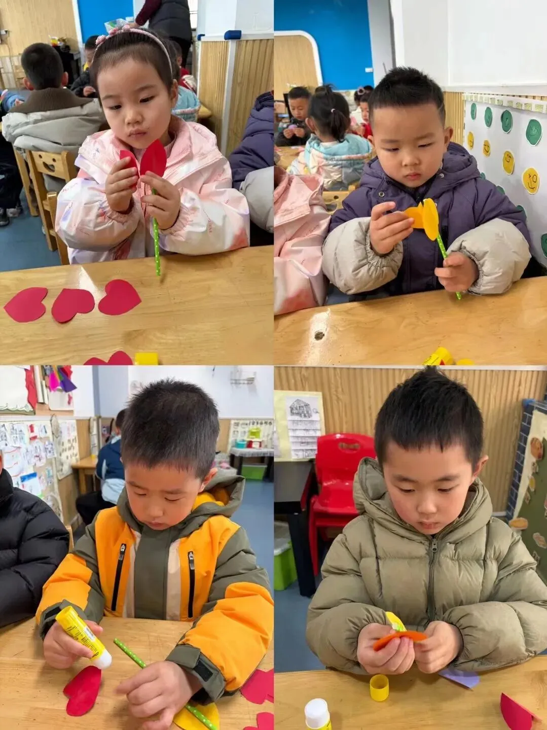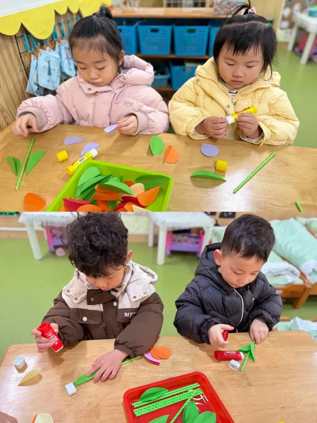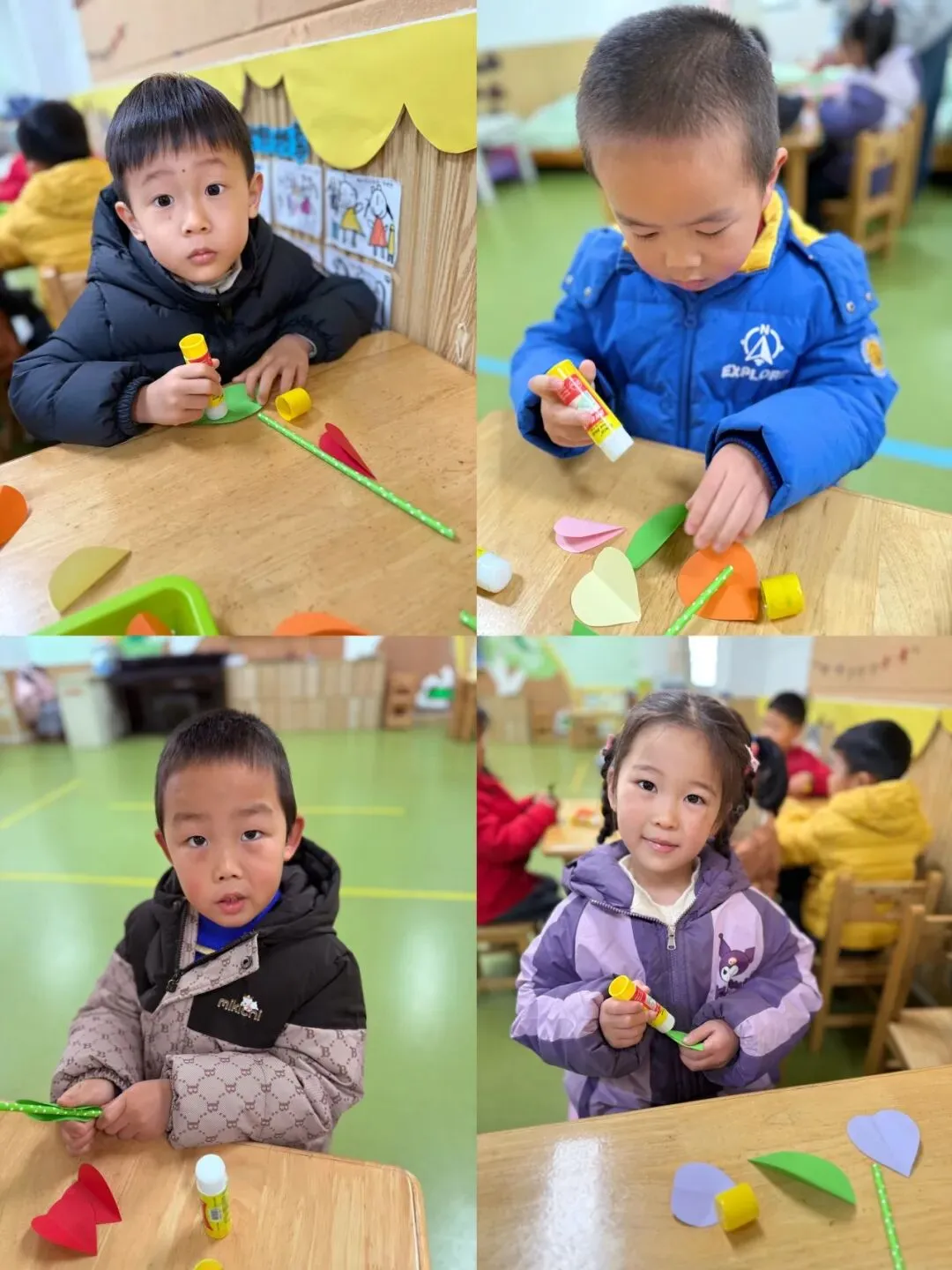中班组的宝贝们手工制作《郁金香》花束。他们用稚嫩的小手,将彩色的材料一点点组合,每一朵郁金香都饱含着对妈妈、奶奶、外婆和老师们深深的爱。当孩子们把这份礼物送出时,那灿烂的笑容仿佛在说:“愿您如这郁金香般优雅美丽!”
