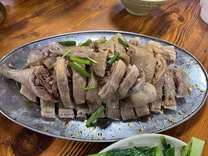 到了中午或晚上,桌上不能没有"仪征老鹅"。这不是普通的盐水鹅,肉质紧实,皮脂丰润但不腻。