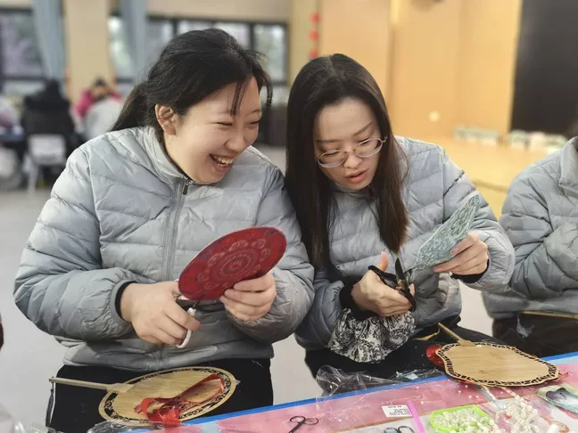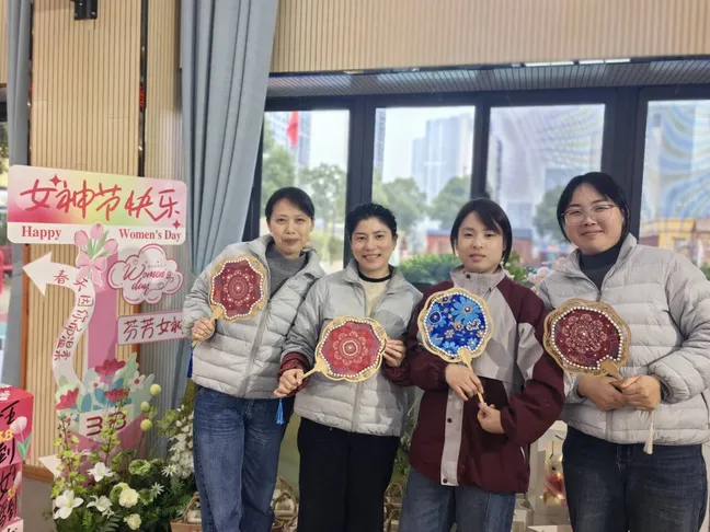 花神映笑颜,定格好时光。一把把精致的宋锦珍珠团扇惊艳亮相,大家轻执团扇,笑意盈盈,成就感满满。明媚笑颜与雅致团扇相映成画,定格下最美的节日瞬间。
