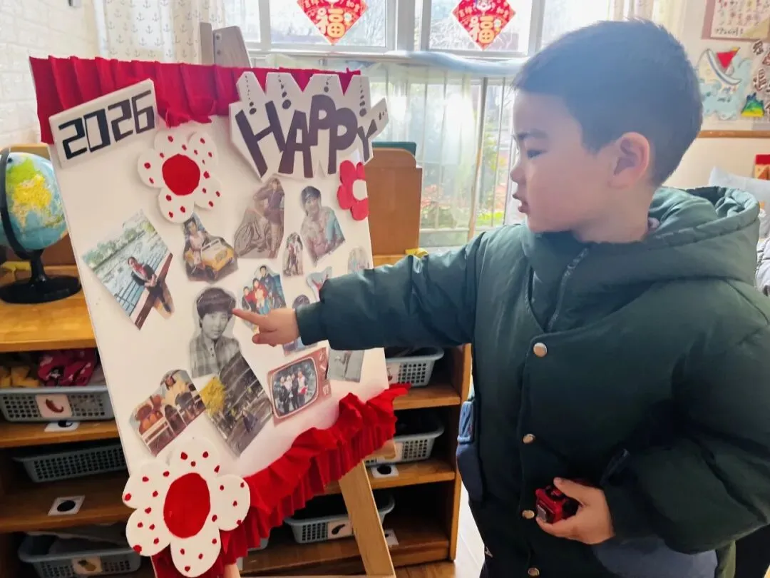 托小班的孩子们聚焦“猜猜她是谁”照片墙,化身“小小侦探”,通过观察妈妈、奶奶不同时期的照片,寻找她们的“独特标志”。孩子们发现最美的“女神”就在我们身边。