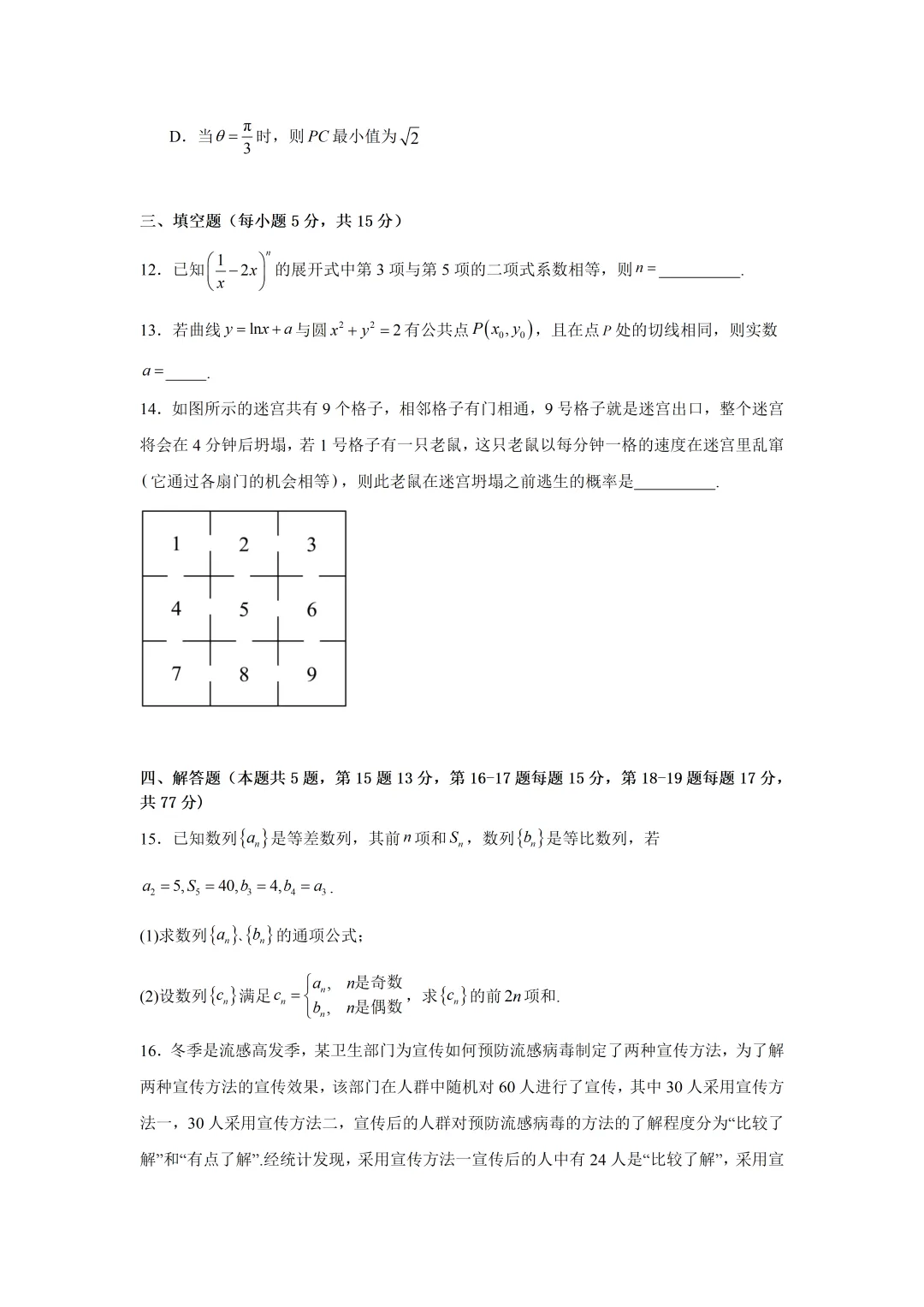 数学试卷及答案