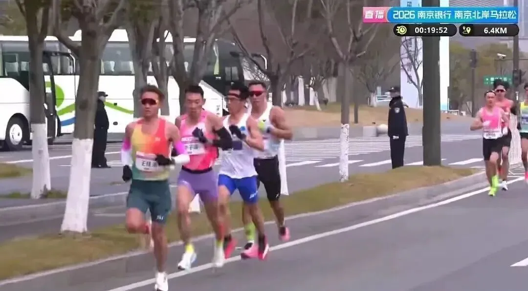发令枪响后,赛事迅速进入白热化阶段。王佳浩、李子成率先发力,带着极快的节奏领跑,与曹天祥、多斯包勒组成第一领跑集团,起步就展现出强劲势头——首个5公里仅用时15分23秒,配速稳定在3分05秒左右,较往年同期速度大幅提升,一开场就拉满竞技氛围。