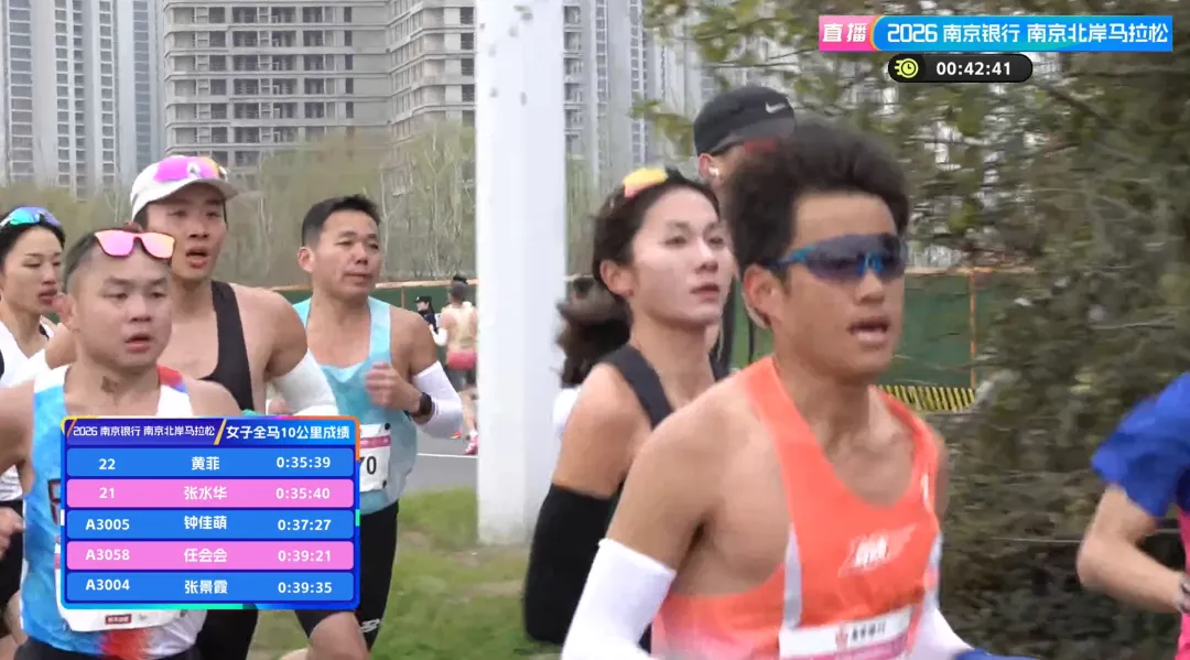女子组赛场同样精彩。黄菲与张水华在一众男选手的护送下,全程保持较快速度,10公里用时35分39秒,领先第三名钟佳萌将近2分钟,早早确立领先优势。但随着赛程深入,女子组格局逐渐发生变化:不到19公里时,张水华开始出现体力下滑,逐渐掉队;20公里左右,她已落后黄菲100米,而黄菲半程用时稳定在1小时15分左右,始终保持稳健节奏。