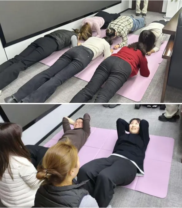 “趣味运动会” 环节,活动设置了平板支撑与仰卧起坐两项挑战,女职工们化身运动健将,大家踊跃参与,互相鼓励,有的同事虽然满脸通红、微微颤抖,但依然咬牙坚持;有的则展现出惊人的运动天赋,轻松夺冠。汗水与笑容交织,展现了供销粮油人坚韧不拔的精神风貌。