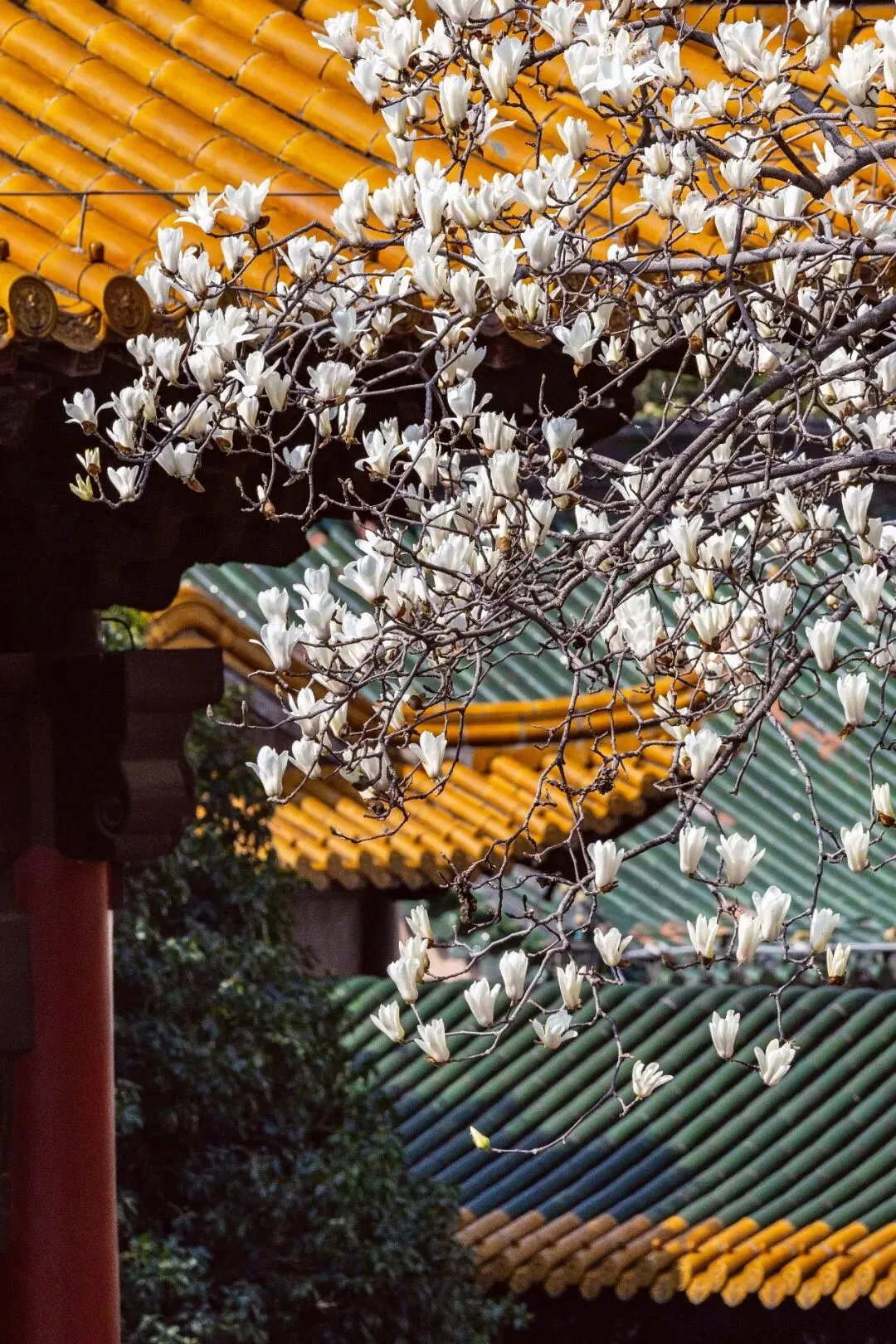 阳光洒下来,花影窗格映在墙上,雍容得很,全然不是街边玉兰的平淡,随手按快门,都是富贵大气的模样,这是朝天宫独有的韵味。