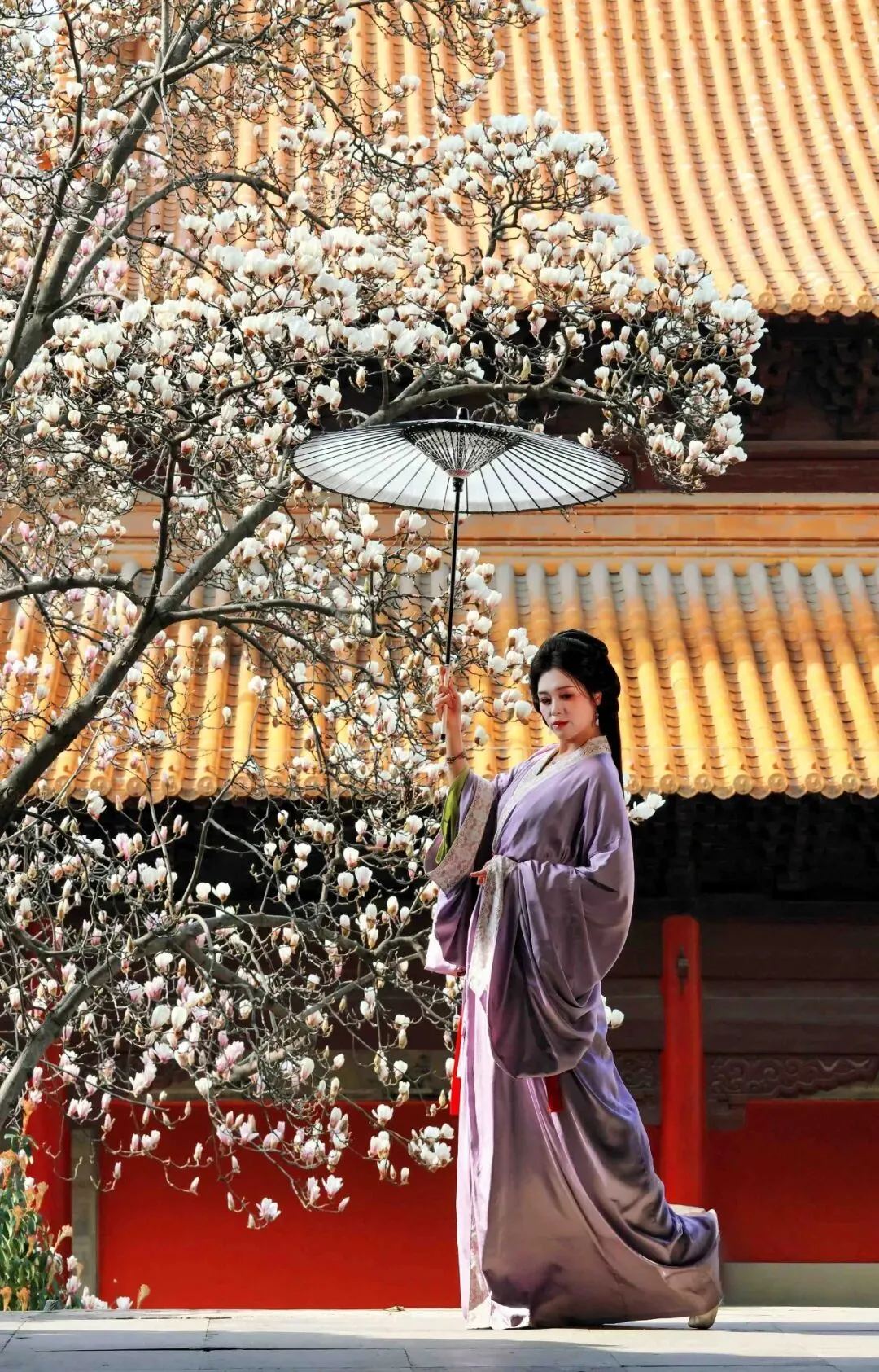玉兰花就开在殿宇之下,花瓣肥厚莹白,像玉雕的一般,衬着朱红宫墙,明艳又端庄。