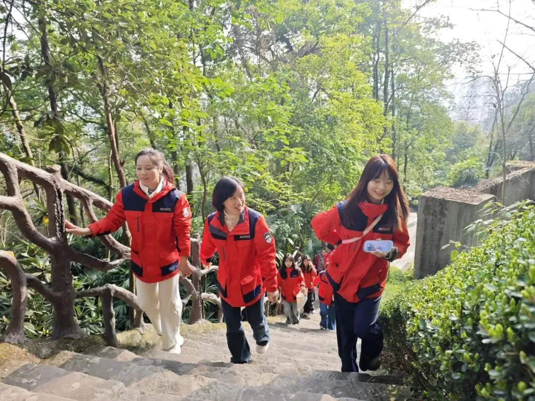 以山为媒,承草木生机;以暖为伴,聚同事情谊。身着亮眼橙装,我们向太白岩轻盈前行。这抹跃动的橙色,是春日山间最温暖的阳光。每一次并肩,都是情感的流动;每一声加油,都是力量的汇聚。在山间清风中舒展身心,我们将这份活力与温情带回校园,传递给每一个孩子。
