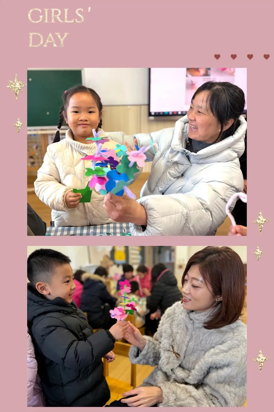 宝贝们举着亲手完成的花束,妈妈和奶奶们的脸上,也漾开了比花儿更温柔的笑容。这一束束手工花,不仅是节日的礼物,更是亲子间爱意的具象表达,把爱折进纸里,把陪伴留在当下。