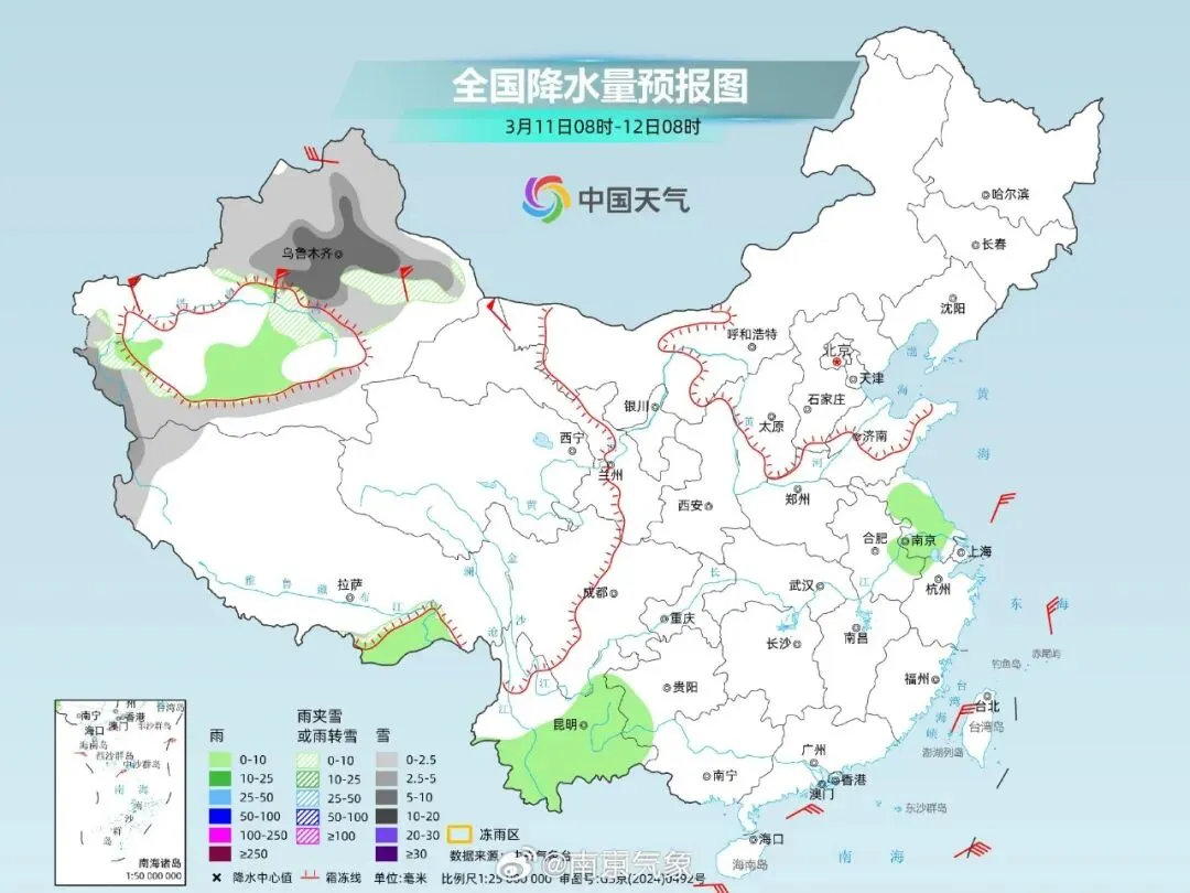 【全国天气】11-15日,受较强冷空气影响,长江以北气温普遍下降4~8℃,局地降温10℃以上。而且10日夜间开始到11日,在冷空气影响下,新疆北部雨雪增多。之后冷空气东移与暖湿气流结合,西南到东北地区将出现大范围雨雪。预报时效较远,大家继续留意临近预报。