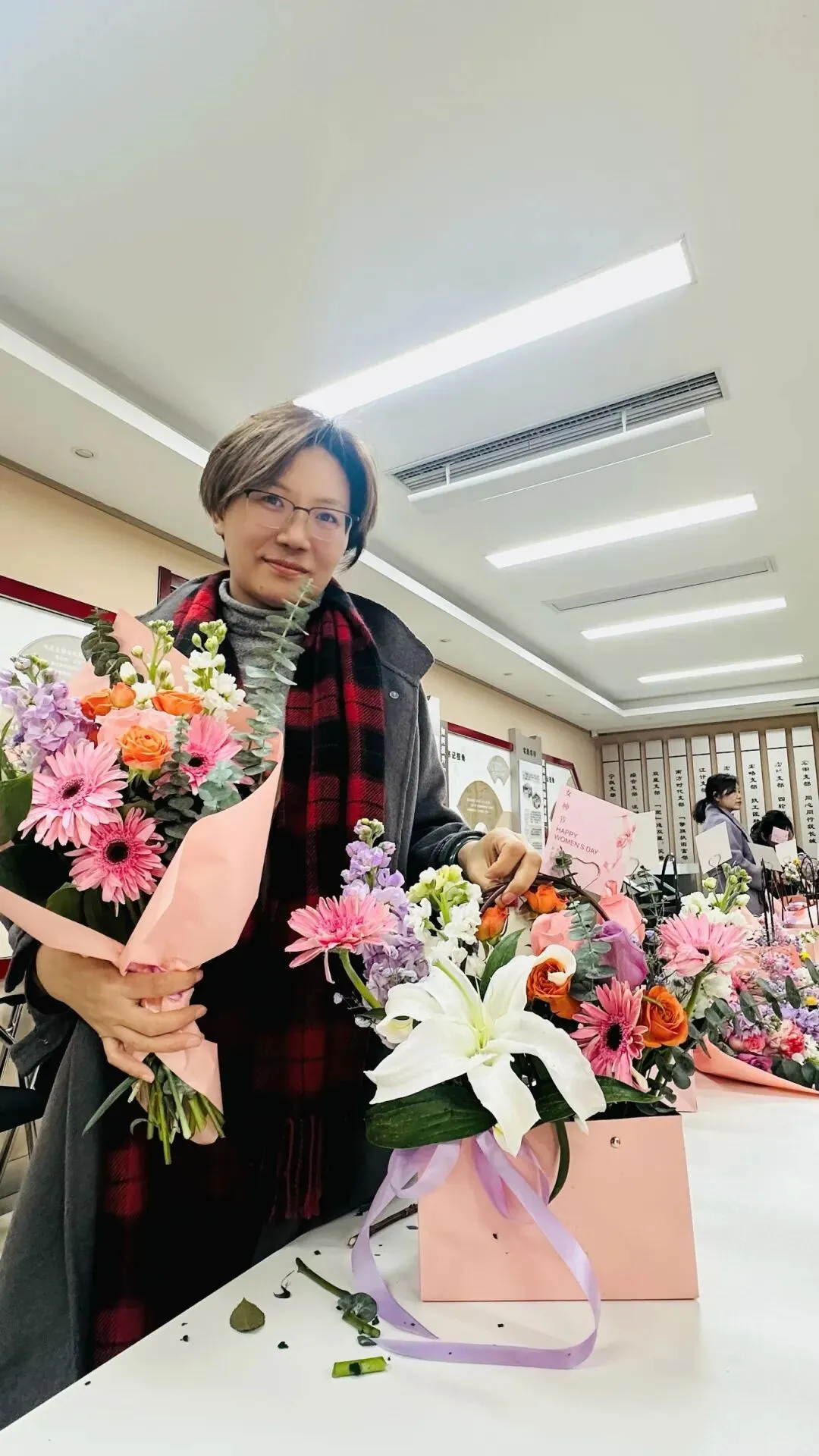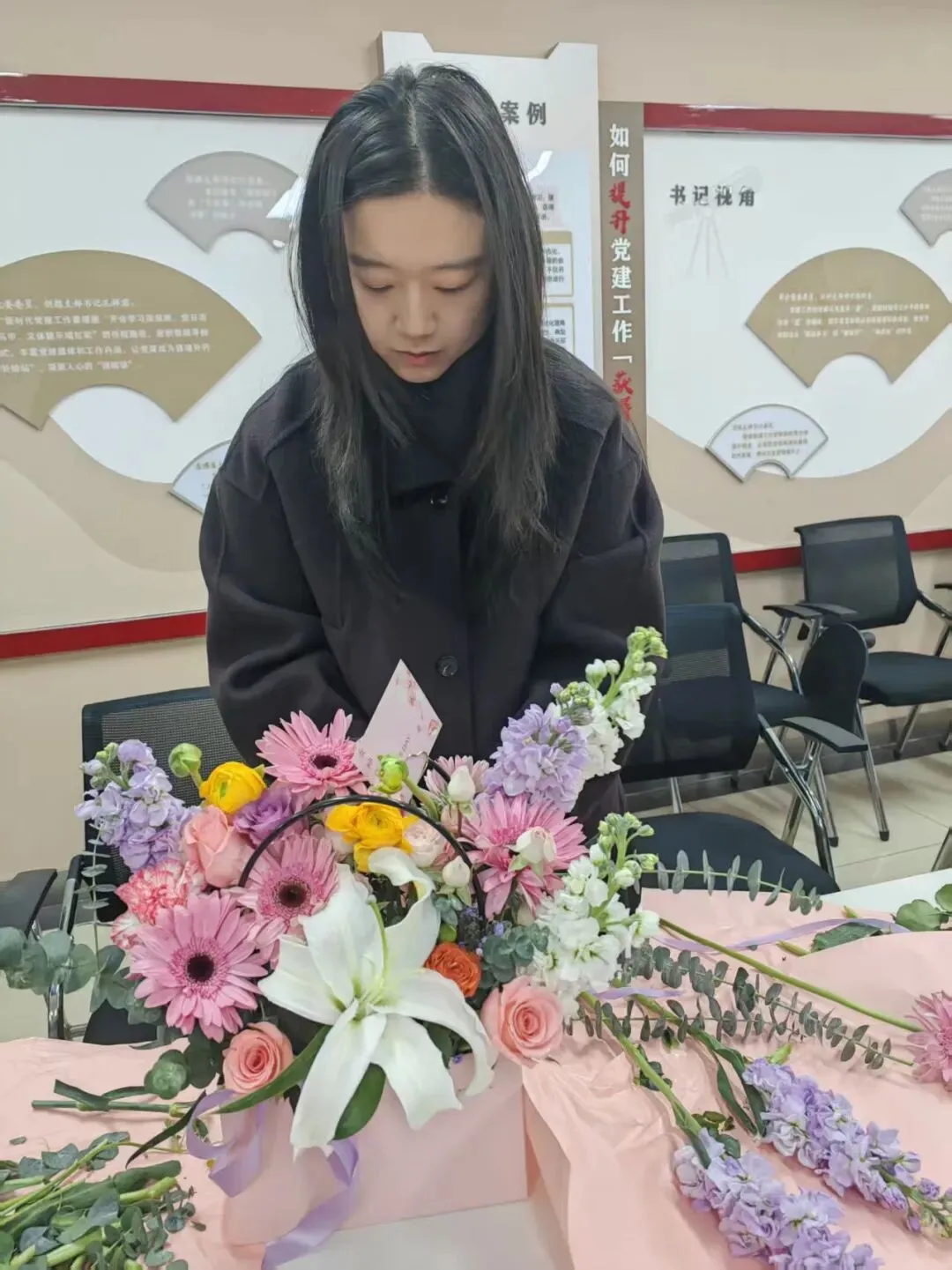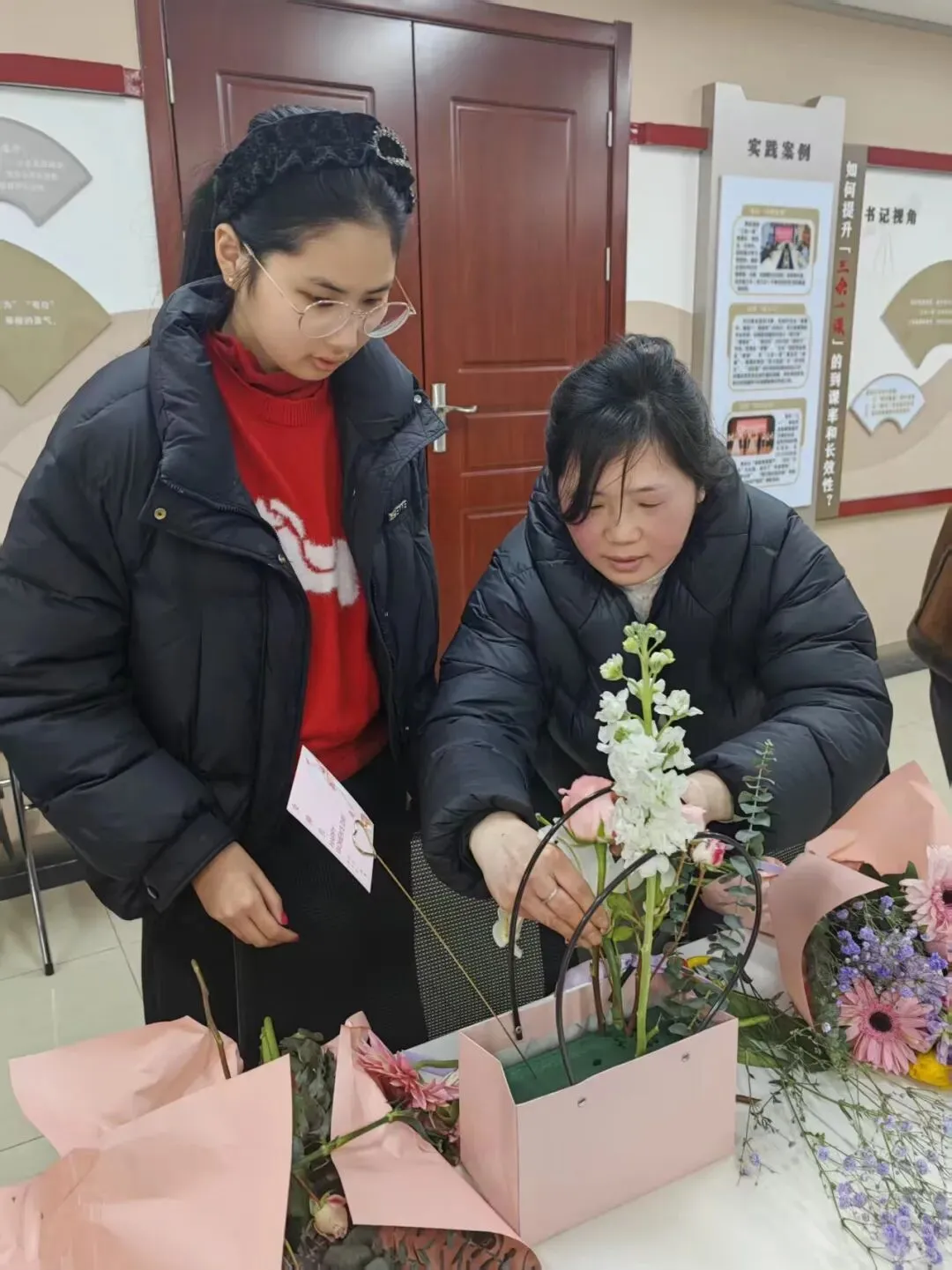 活动现场欢快轻松,花香四溢,邀请专业花艺老师现场讲解花材选品、色彩搭配、造型设计以及鲜花养护等知识,并结合节日主题现场演示插花技巧,从花枝修剪的角度到高低错落的层次布局一一悉心指导,帮助大家快速掌握插花要领。