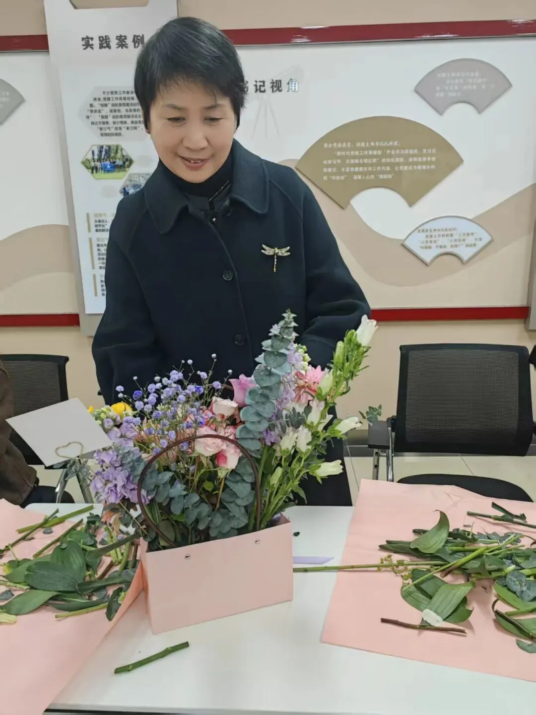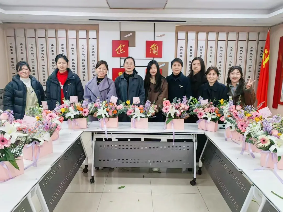 三月春风拂面来,巾帼花开别样红。为庆祝第116个国际妇女节,丰富商会女性会员的精神文化生活,以插花活动为契机,舒缓身心、增进情谊,3月7日下午,南京市金华商会与南京市浦江商会精心举办了一场以“以花为礼,致敬巾帼”为主题的插花活动,南京市金华商会常务副会长胡瑾、吕宏莉,副会长张薇,南京市浦江商会常务副会长盛小兰、张秀芳等十余人参加活动。