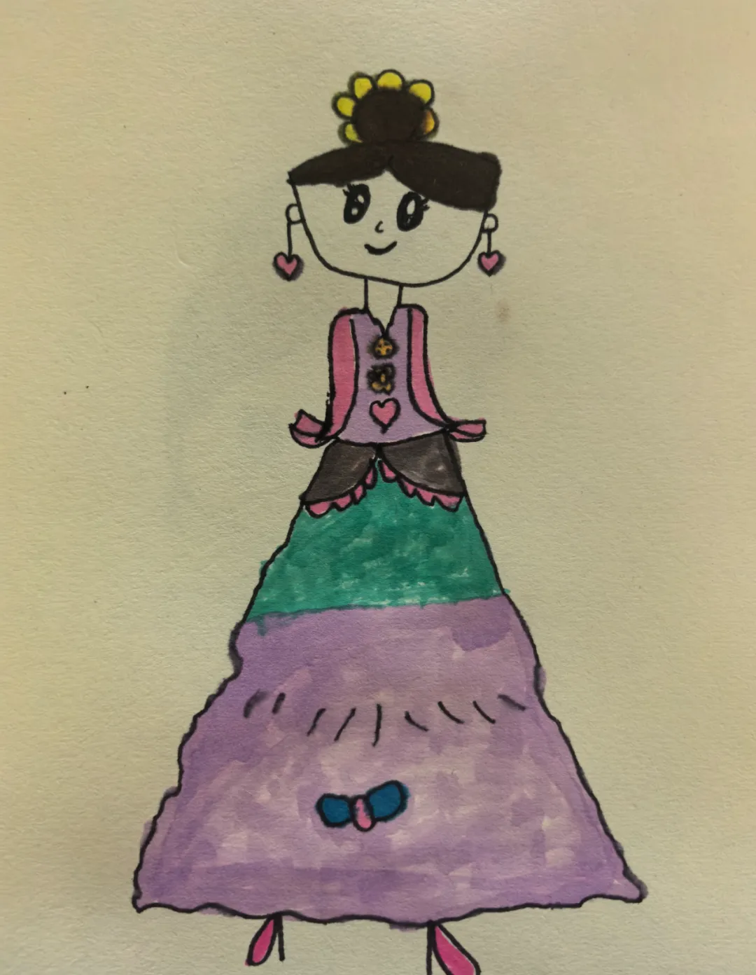 一张童趣贺卡、一朵手工小花、